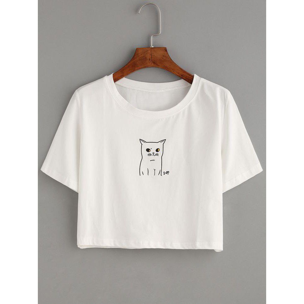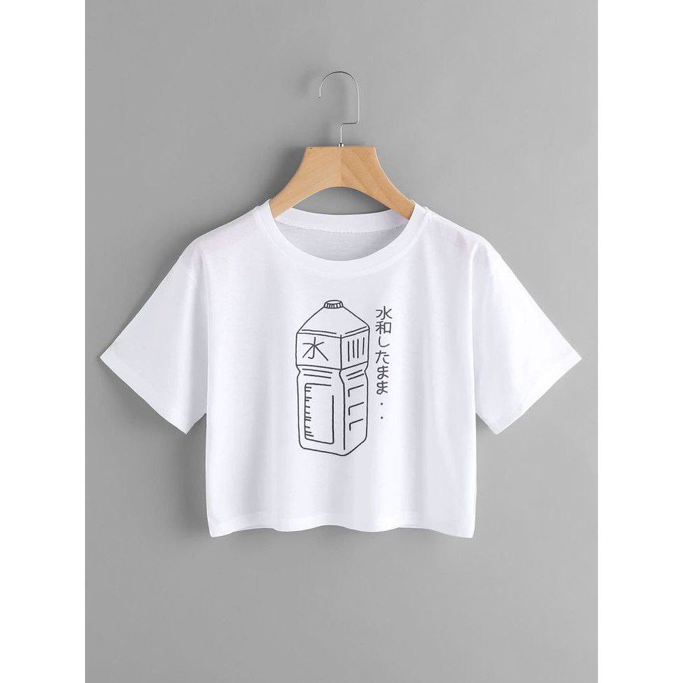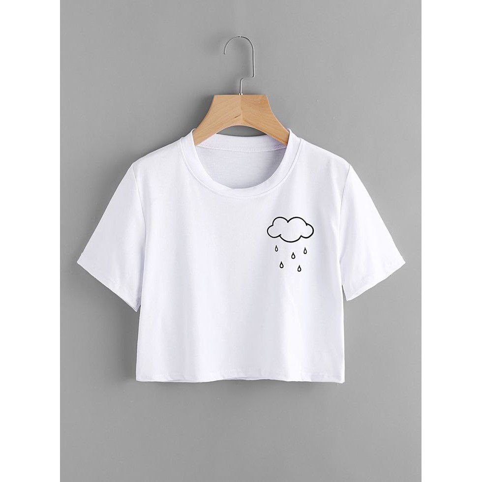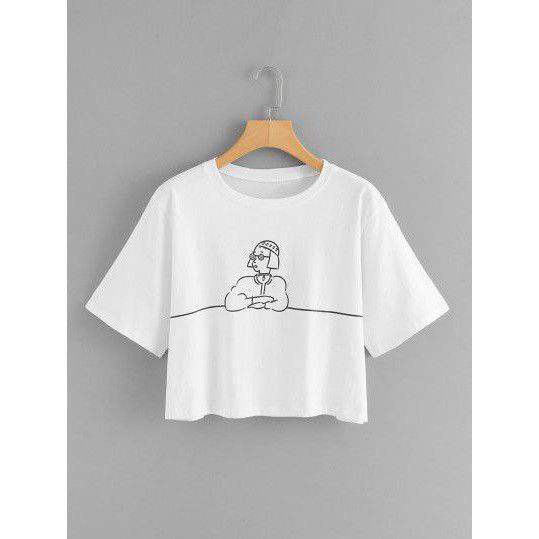 Clothing May - Kaos Crop Top Putih Aesthetic Kaos Distro Croptop Atasan Krop Top Wanita Cewek Viral