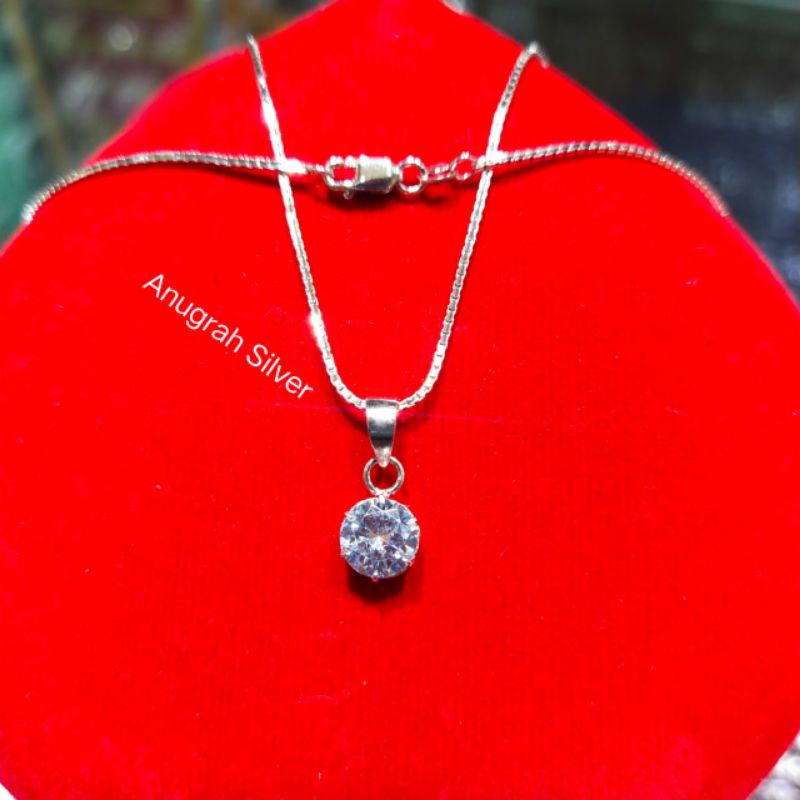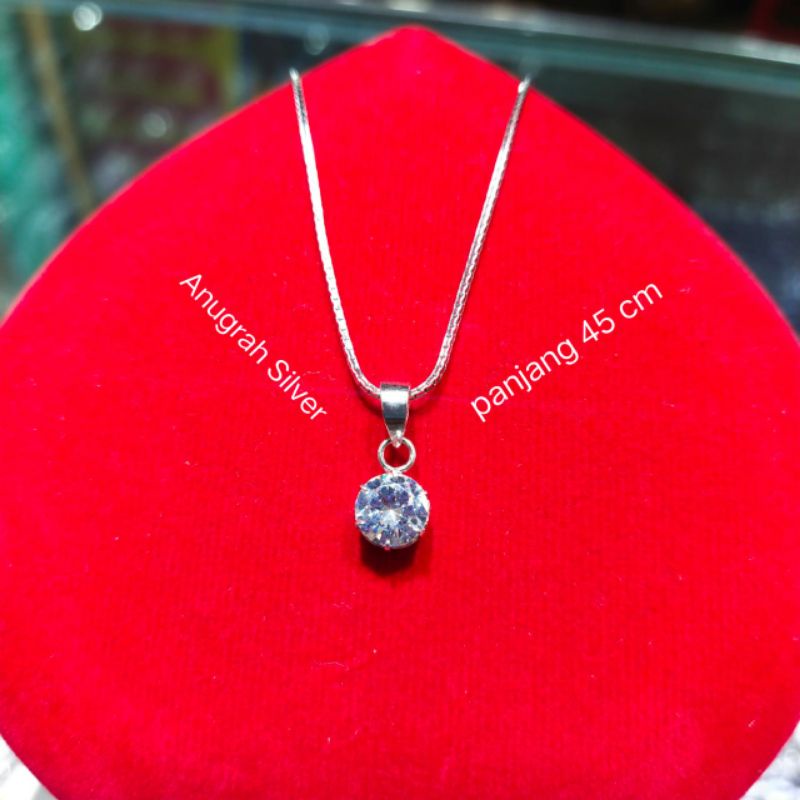 Kalung wanita italy Santa+liontin desy ukuran 45cm perak asli 925 remaja & dewasa mata diamond putih kilau/Silver lapisan emas putih murni!!!