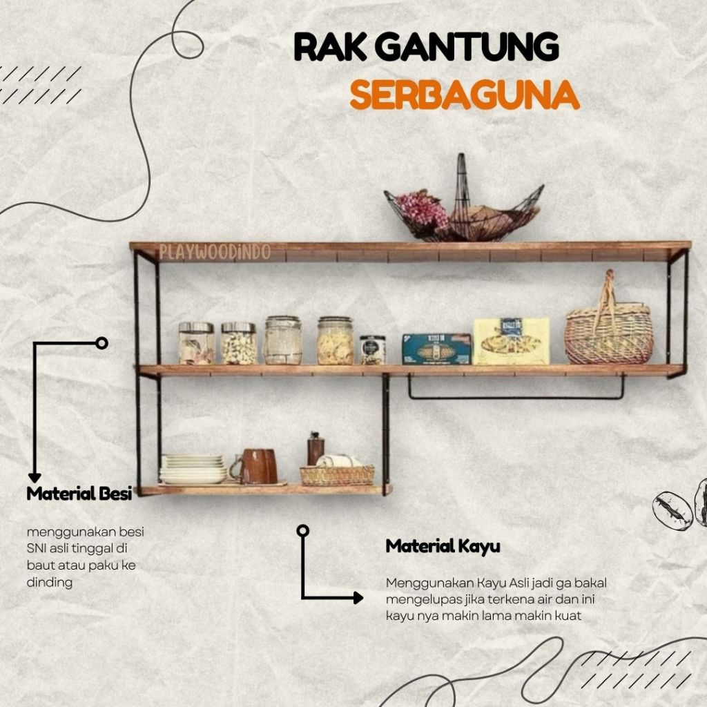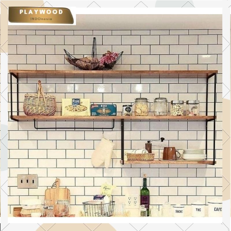 Kitchen Set Rak Bumbu Dapur 3 susun lebar 10 cm | kichen set serbaguna kayu besi gantung dinding