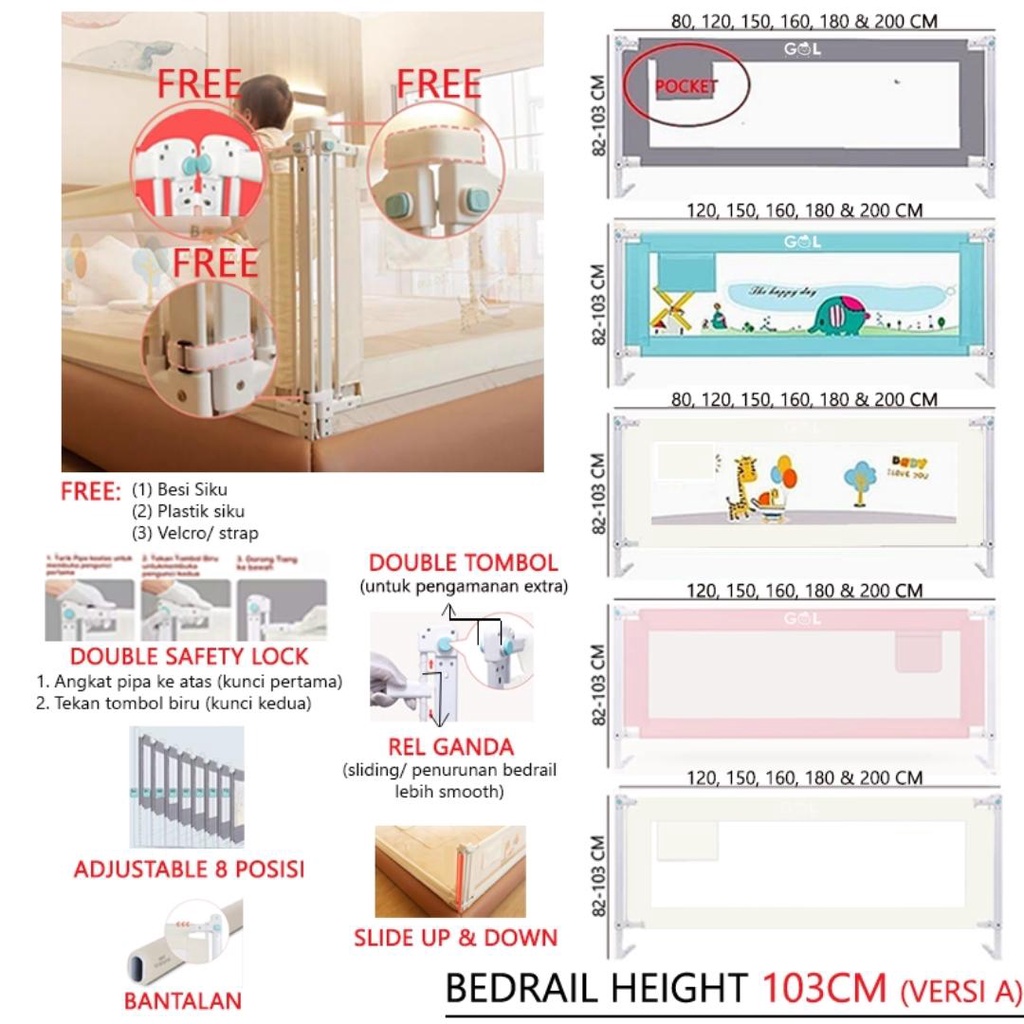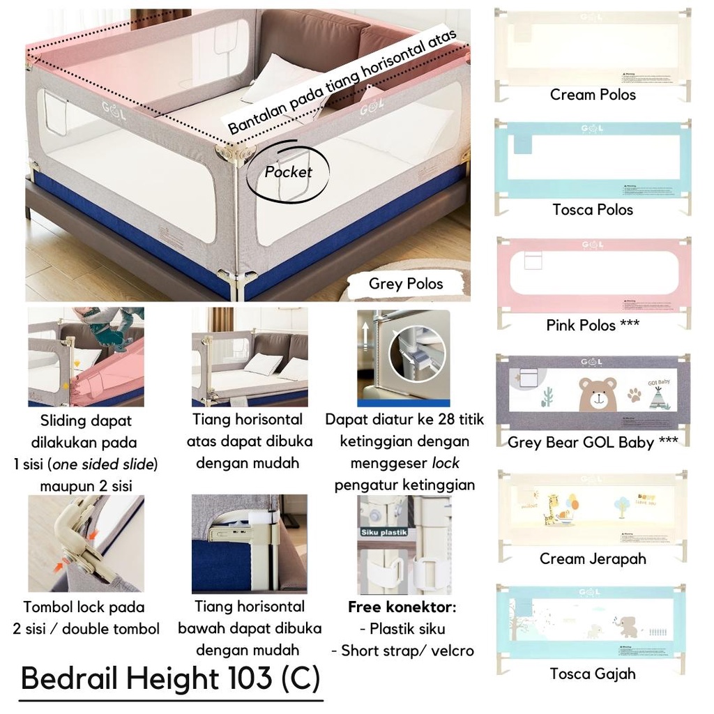 GOL Baby Bedrail Pagar Kasur Pengaman Baby Pembatas Kasur Pagar Bayi Strong & Ekstra Extra Tall Bedguard Fence Pengaman Penghalang Kasur Untuk Bayi Pagar Tempat Tidur Bayi Pagar Pengaman Bayi Bed Rail Safety Guard Ranjang Anak Balita Box Tinggi 103 CM