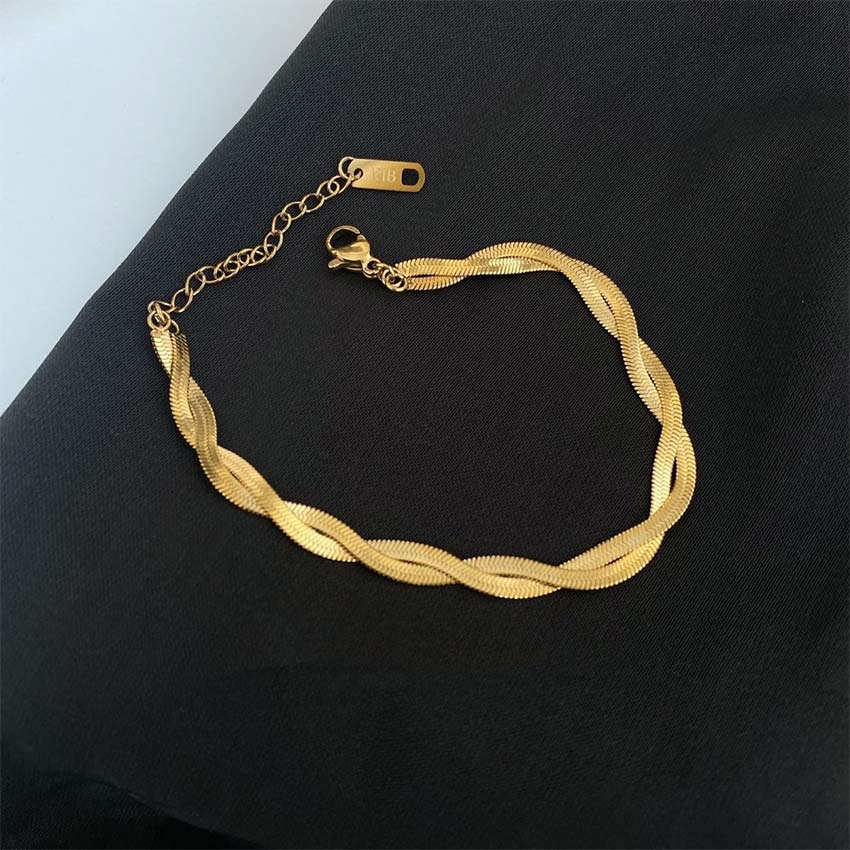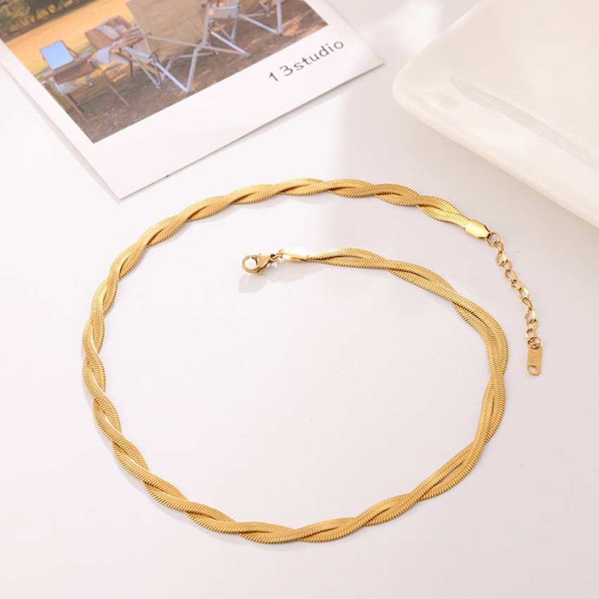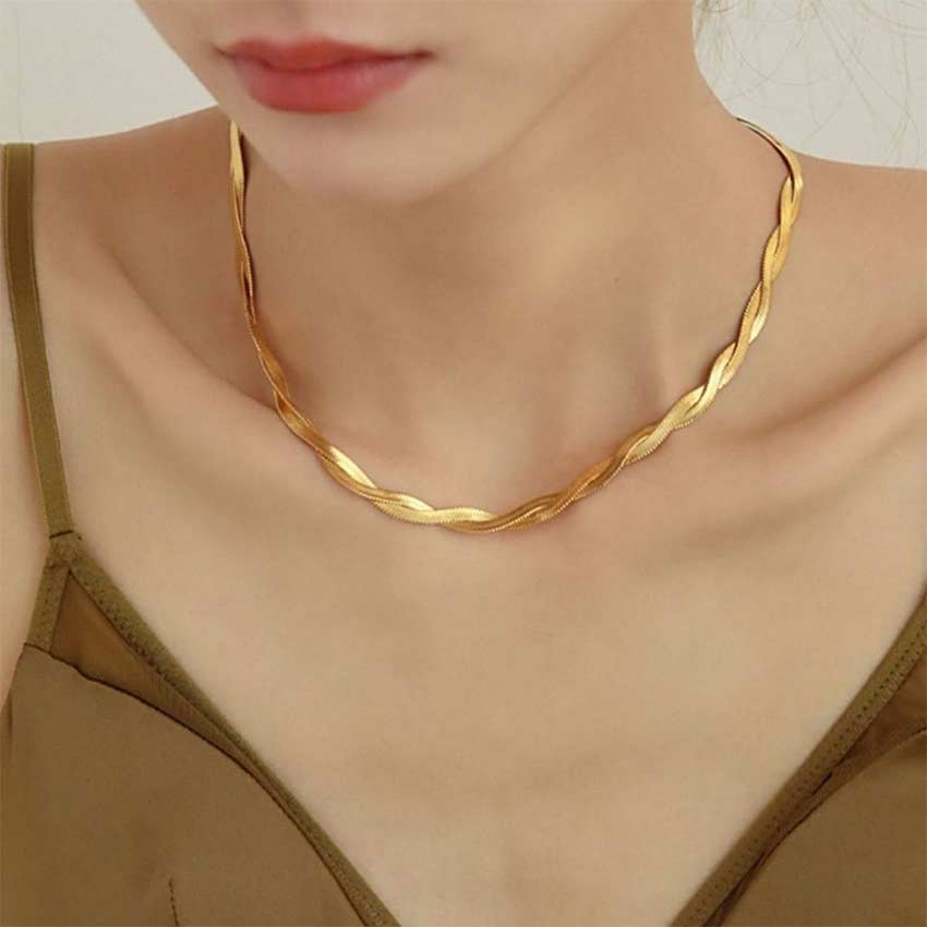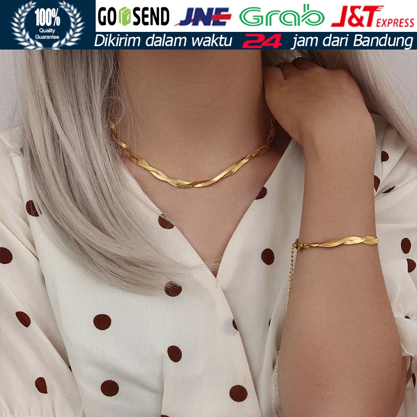Kalung Titanium Anti Karat Gold Model Gepeng / Kalung Pria Dan Wanita