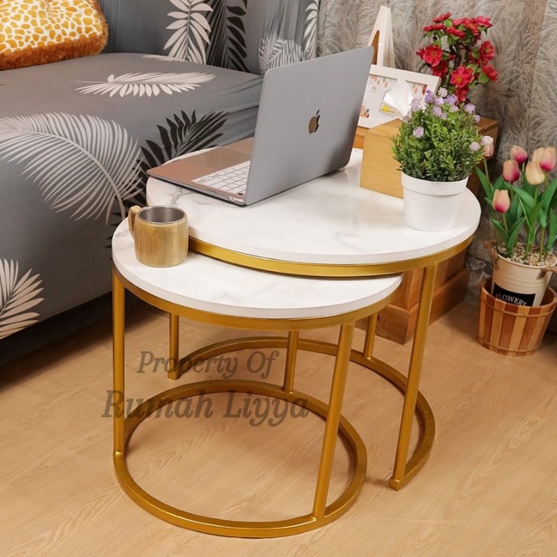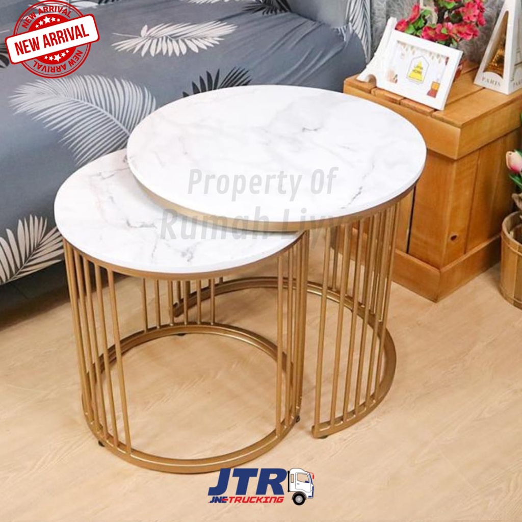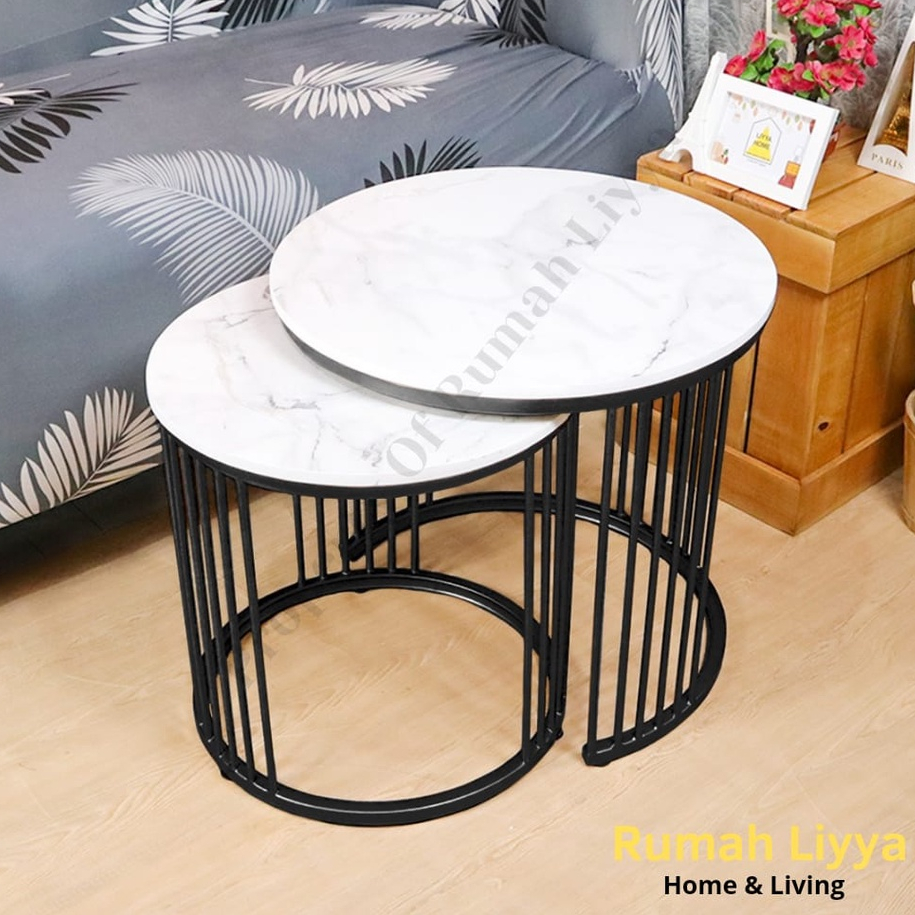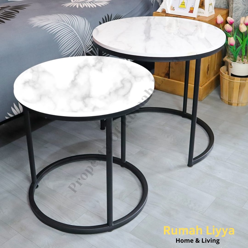 RumahLiyya Meja Besi Bulat Ruang Tamu Minimalis Kaki Besi - Cosmo Table