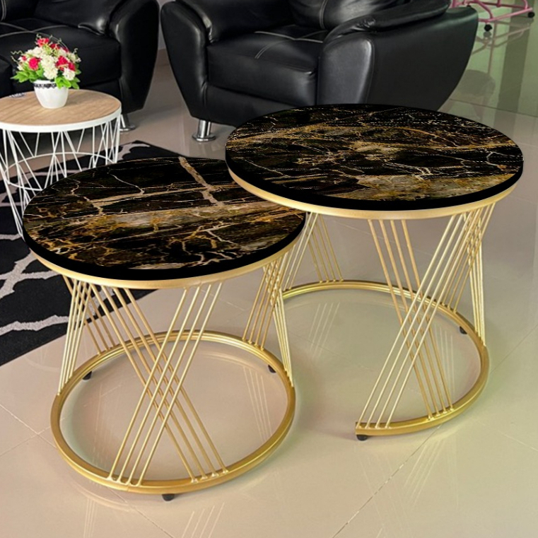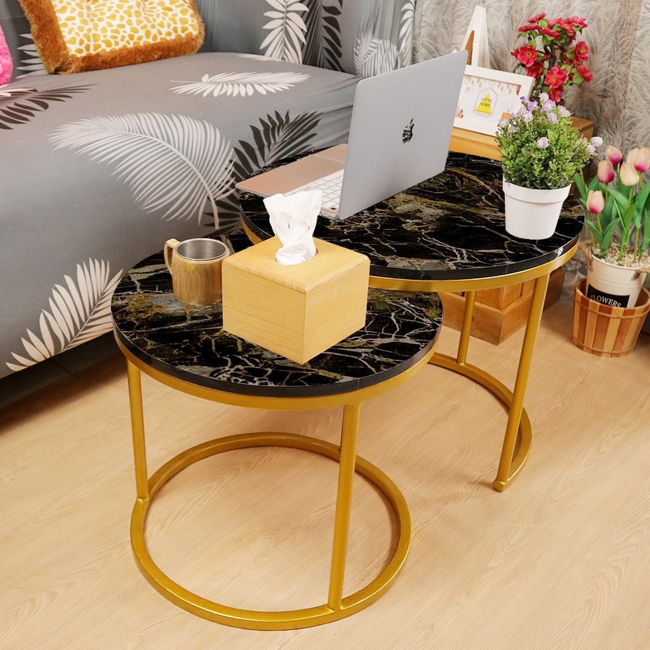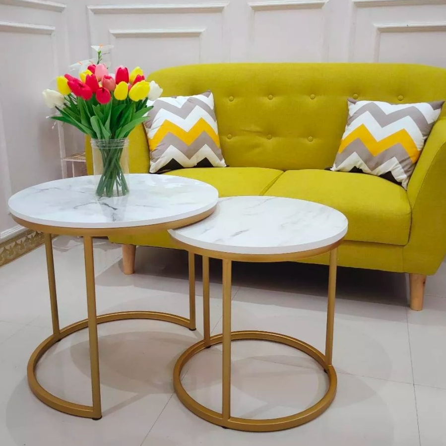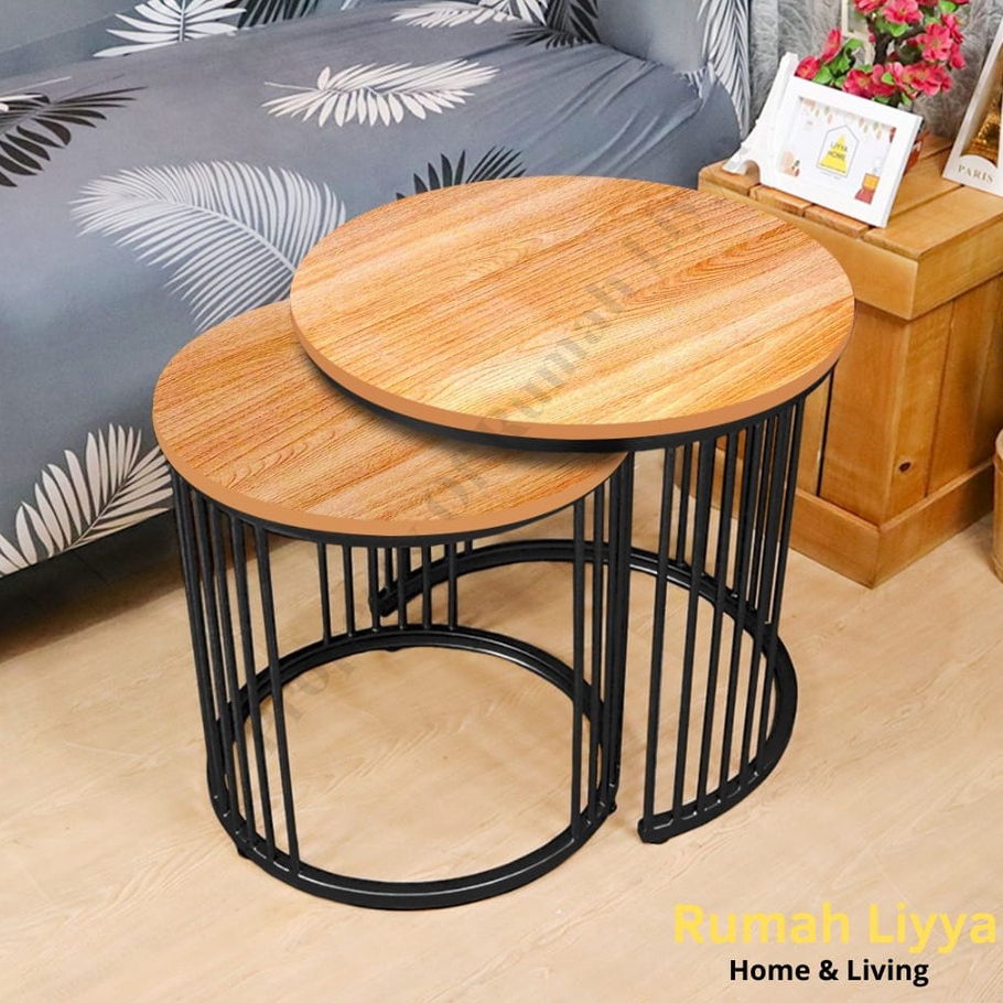 RumahLiyya Meja Besi Bulat Ruang Tamu Minimalis Kaki Besi - Cosmo Table