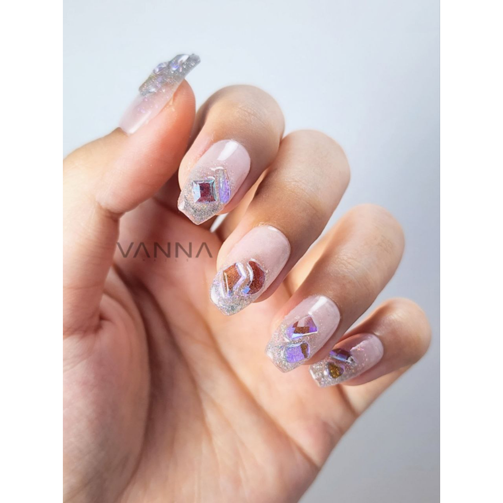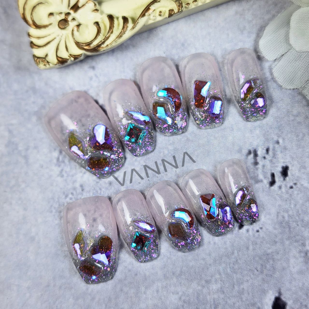 Custom Fake Nails Kuku Palsu Reflective Diamond Nail Art Press on Nails by Vanna Nails