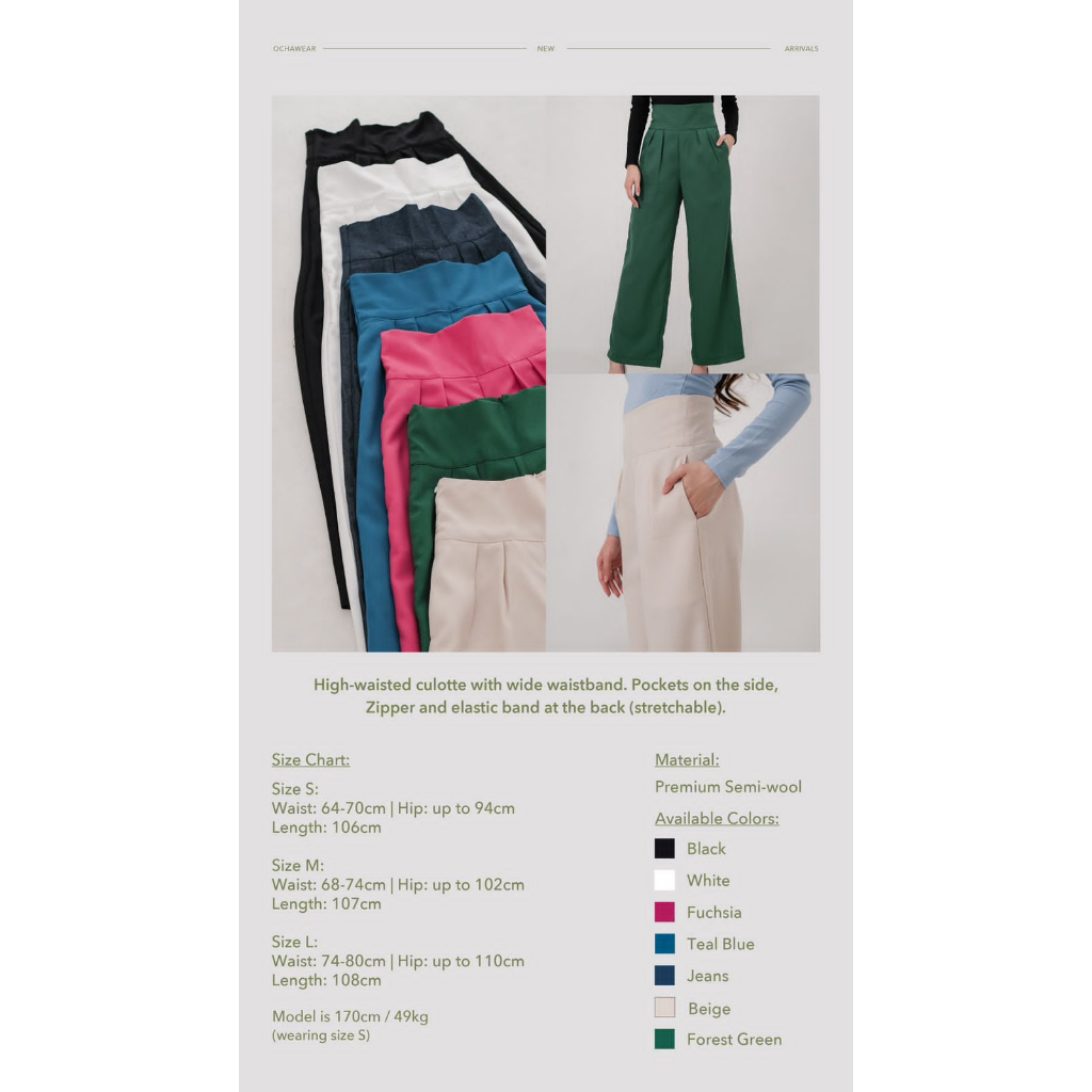 Meghan HW Culotte —— Ocha Wear | High Waist Cullote | Celana Panjang Kulot Wanita | Cargo Pants Premium