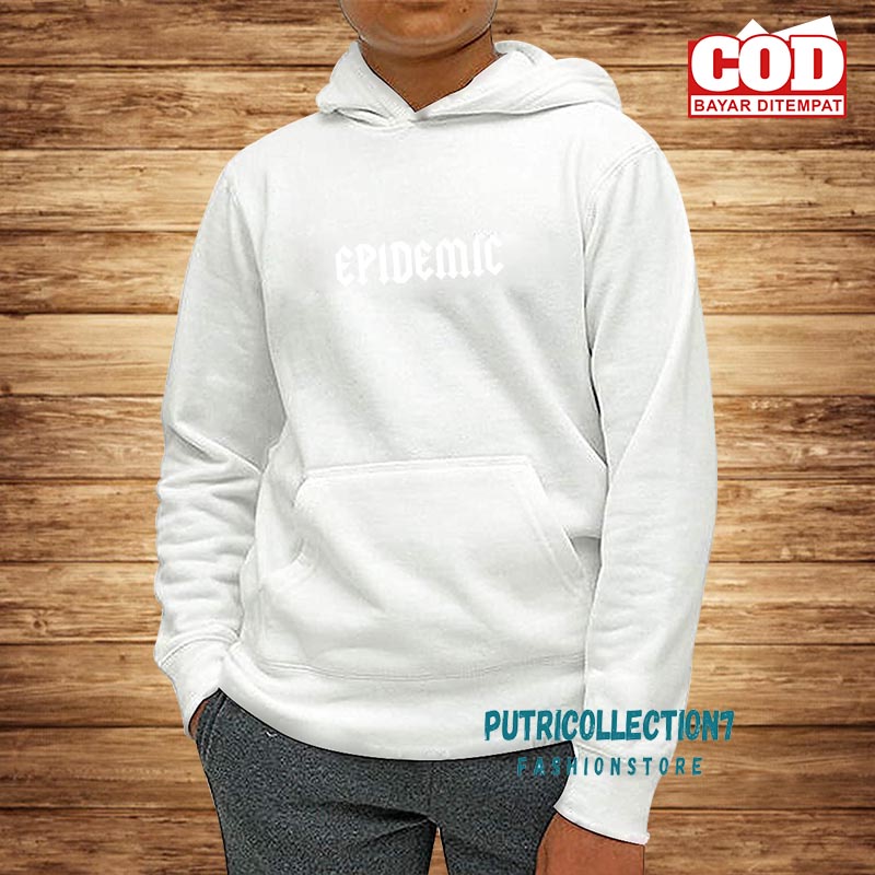 PUTRICOLLECTION - SWEATER DISTRO HOODIE JUMPER COTTON FLEECE PRINTED PRIA DAN WANITA/EPIDEMIC WHITE