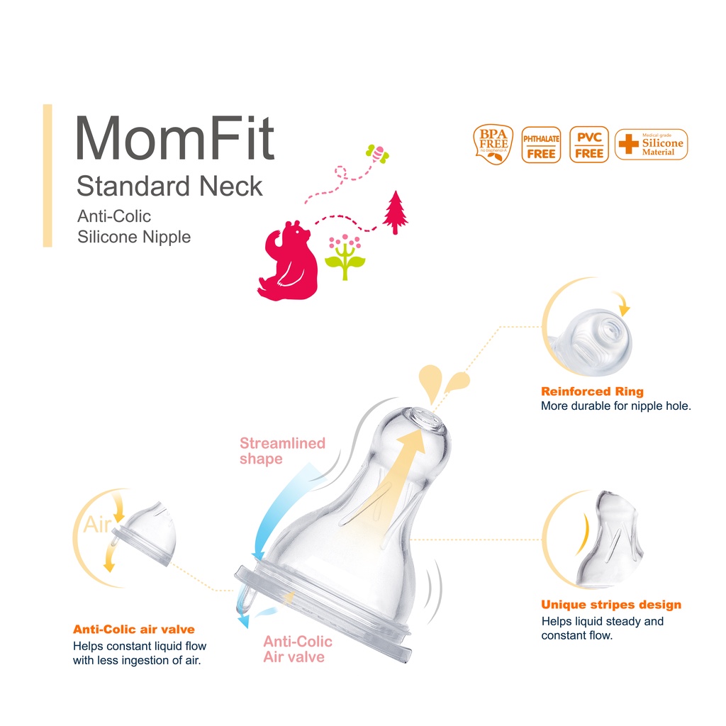 Farlin MomFit Nipple Standard Neck - Dot Bayi Anti Bingung Puting dan Anti Kolik, Cocok untuk Bayi Baru Lahir