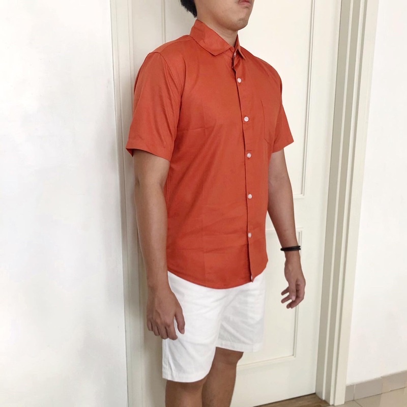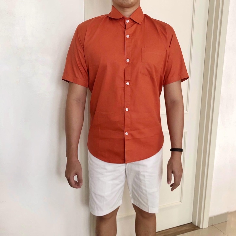 [CLEARANCE SALE] Kemeja Lengan Pendek Orange Oren Katun Slimfit