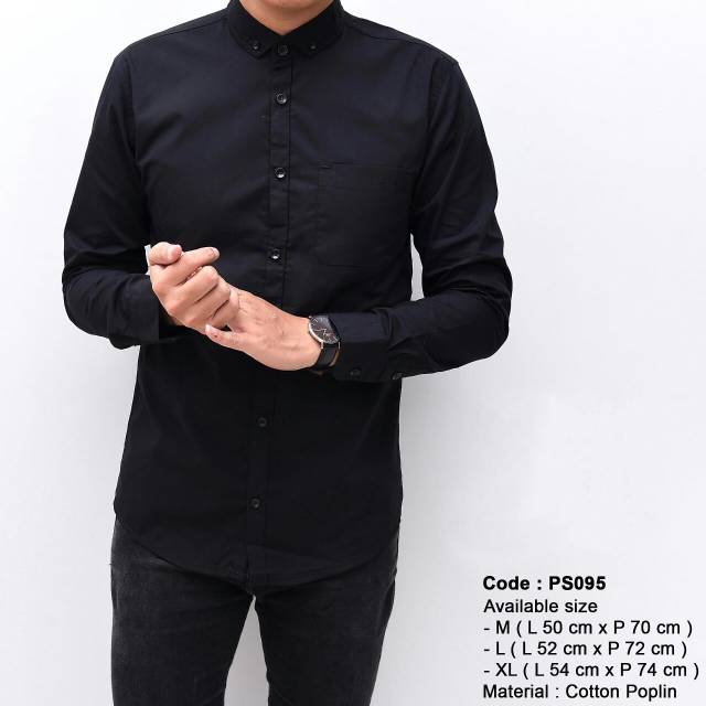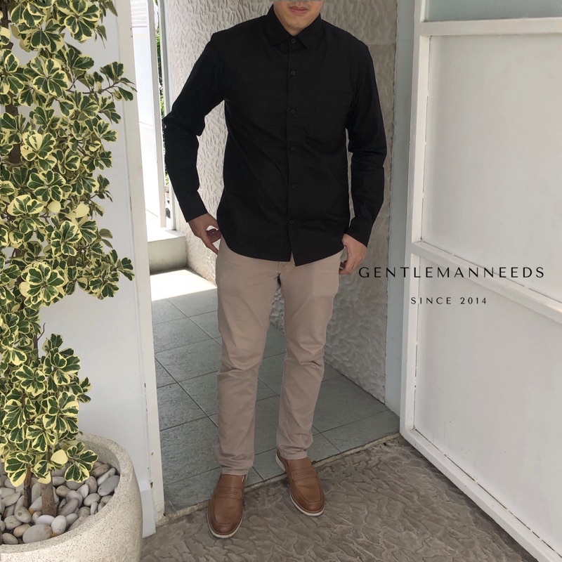 [CLEARANCE SALE] kemeja hitam black simple polos panjang pria cowok lelaki laki plain black slimfit bagus keren polos