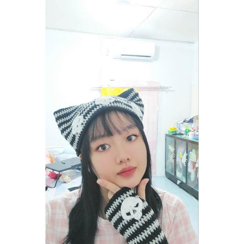 HANDMADE SKULL KITTY BEANIE CAT EAR LOVERBOY HAT/HANDGLOVESSKUL/SARUNGTANGAN/HENDERY WAY V NCT/JISUNG NCT DREAM/NCTZEN/NCT127/TAEYONG NCT/LISA BLACKPINK/HYUNJIN/HYUNSUK/HOSHI SEVENTEEN/KUPLUK/AESTHETIC ESTETIK/KAWAI STYLE/TOPI RAJUT/TOPI LUCU/CUTE HAT