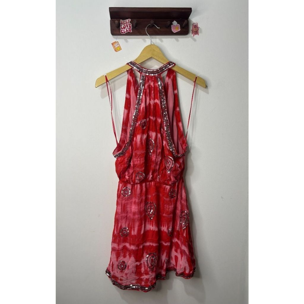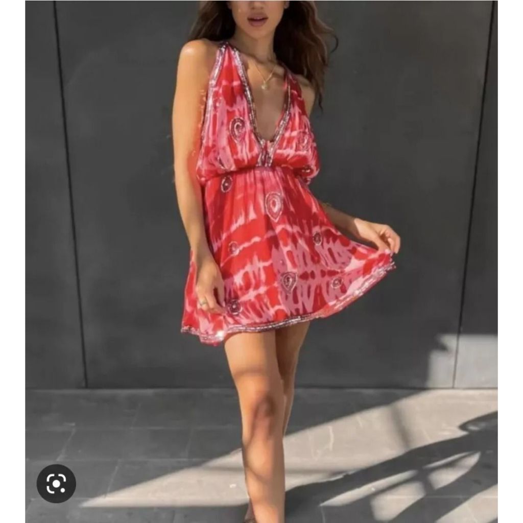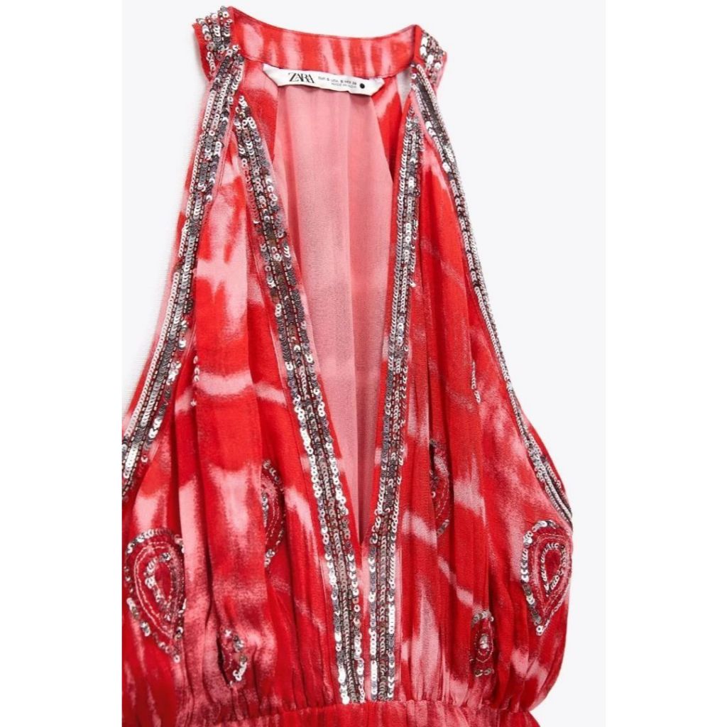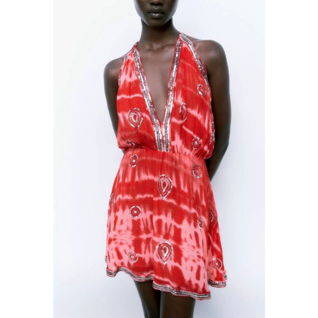 ZARA RED LIMITED EDITION SEQUIN TIE DYE HALTER NECK DRESS