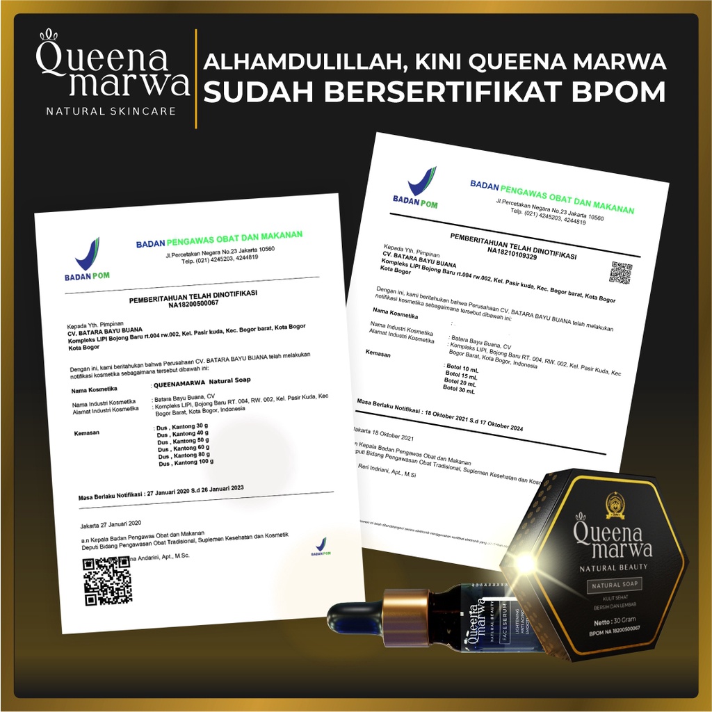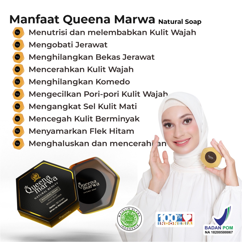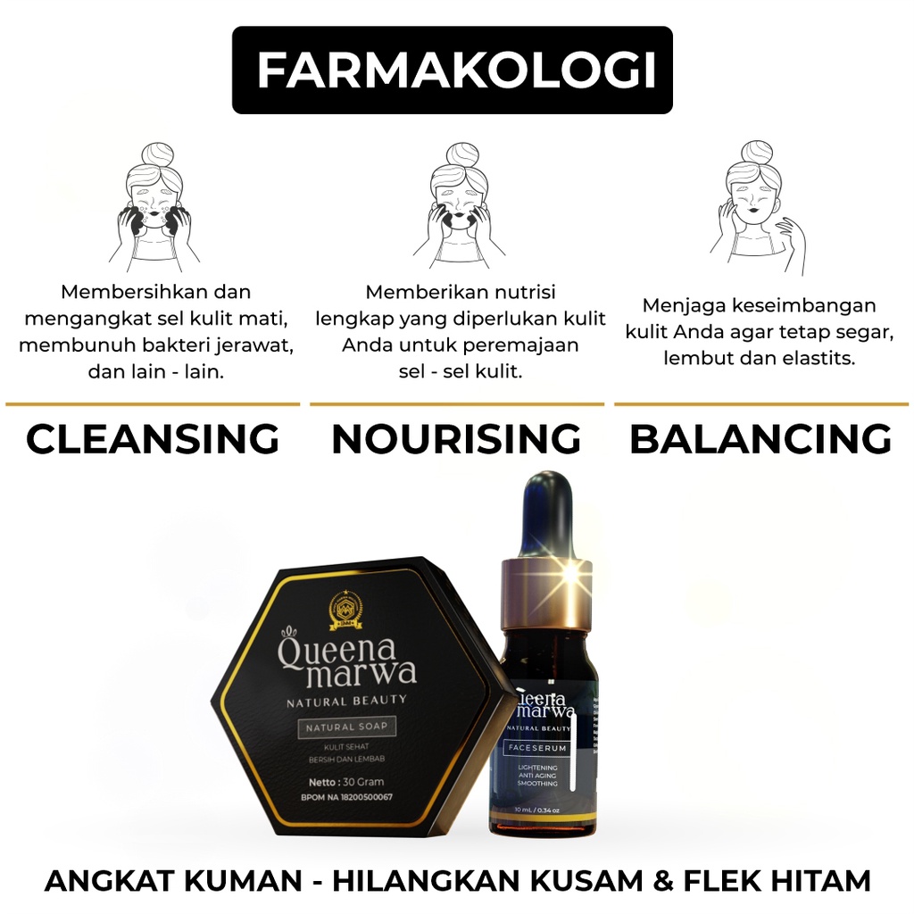 Queena Marwa Skincare Face Serum dan Natural Soap Menghilangkan Jerawat dan Bekas Jerawat, Flek Hitam, Mencerahkan Paket Glowing Skincare Muslimah Halal dan Herbal