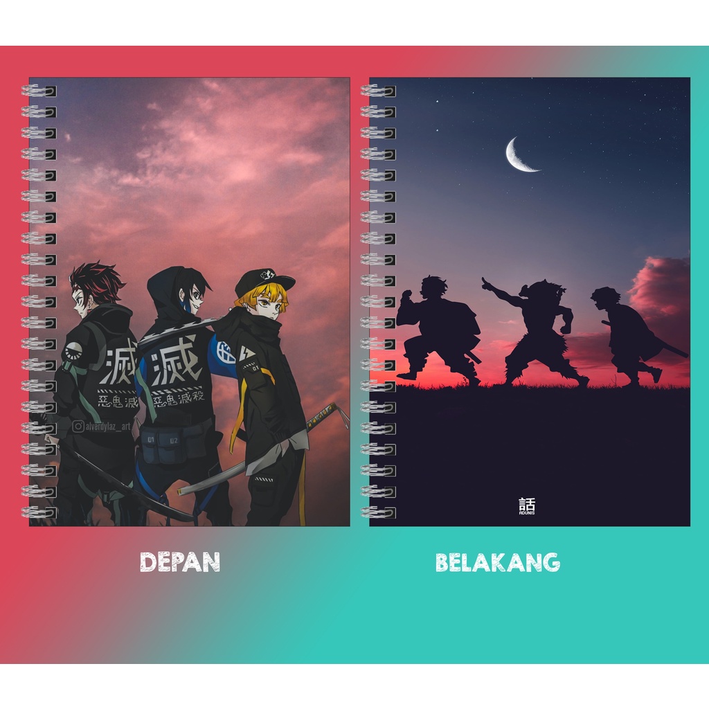 Notebook ANIME / buku catatan anime kimetsu no yaiba ukuran A5 A6 A7 nezuko/tanjiro/zenitsu/inosuke/giyu tamioka/shinobu/rengoku/sanemi/uzui/obani