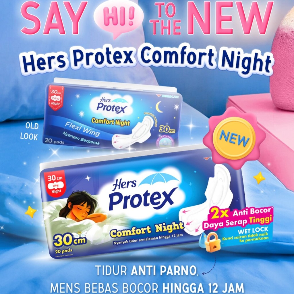 Hers Protex Softcare Pembalut Wanita Comfort Night 30 cm Bag Isi 20 Pcs x2