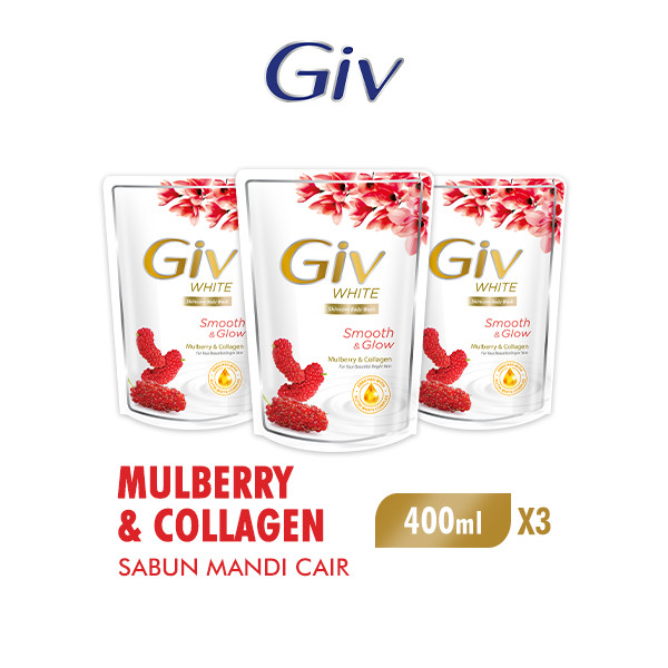 Giv White Sabun Mandi Cair Mulberry Pouch 400 ml x3