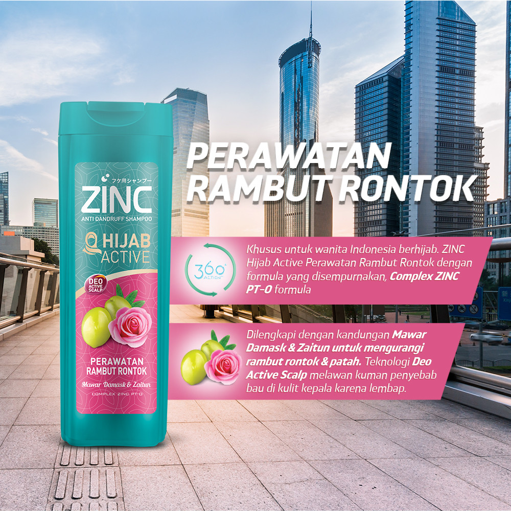 Zinc Shampoo Hijab Active Perawatan Rambut Rontok Botol 170 ml x2