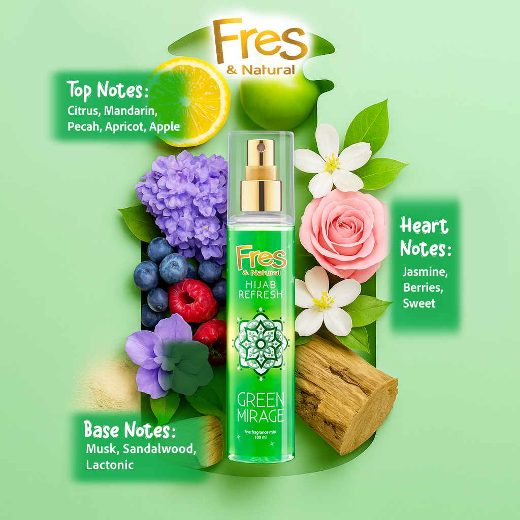 Fres & Natural Spray Cologne Hijab Refresh Green Mirage Botol 100 ml