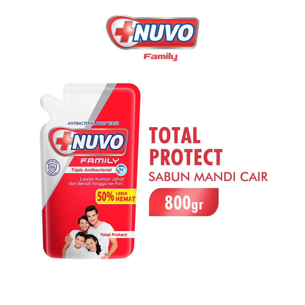 Nuvo Family Sabun Mandi Cair Merah Total Protect Pouch 800 gr x2