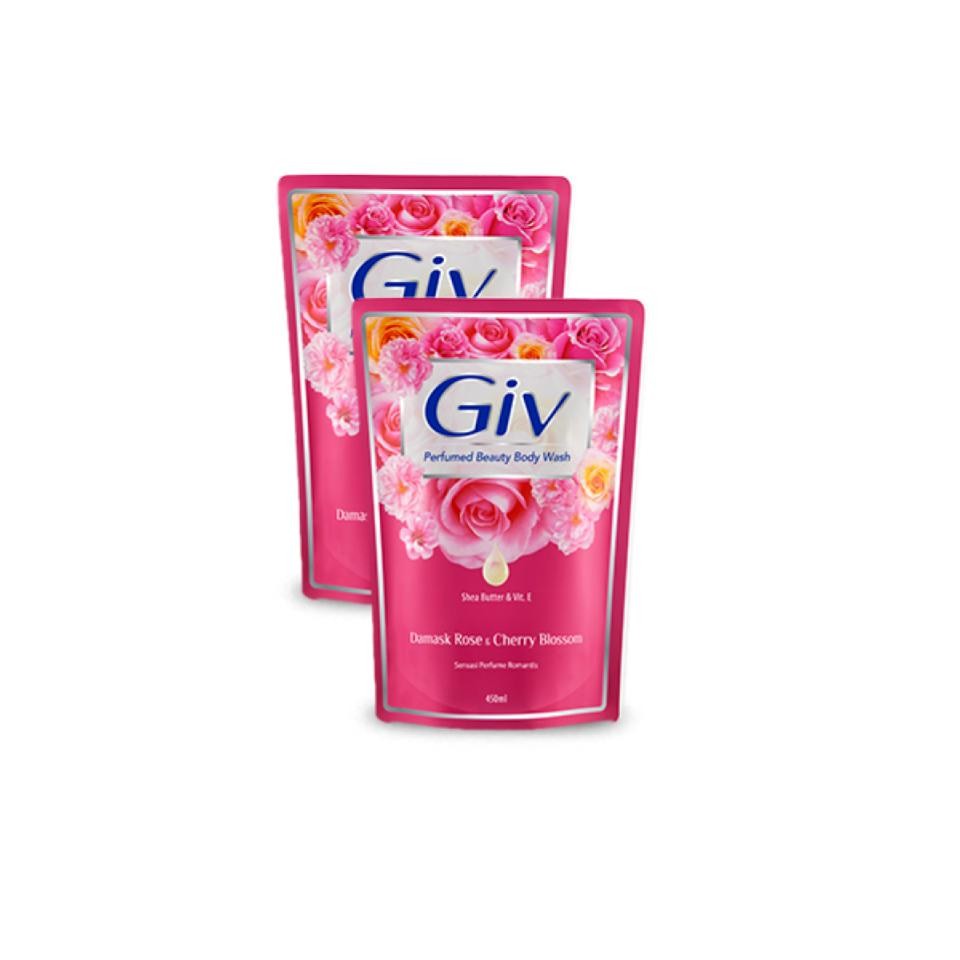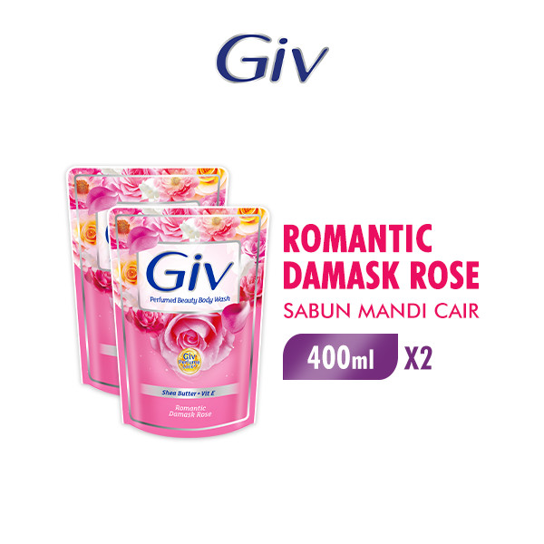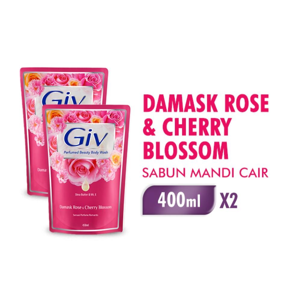Giv Sabun Mandi Cair Pink Damask Rose & Cherry Blossom Pouch 400 ml x2