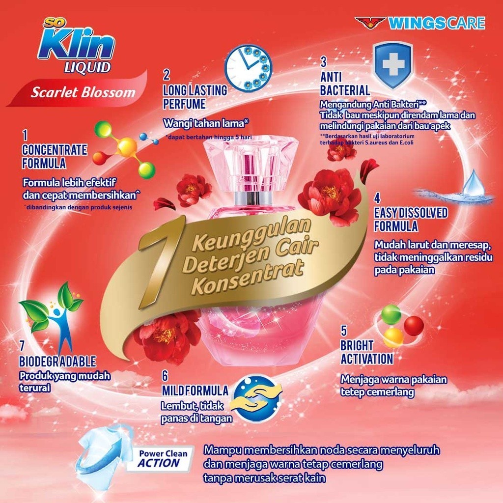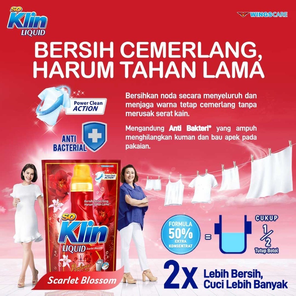 Soklin Deterjen Cair Perfume Merah Scarlet Blossom Pouch 700 ml x2