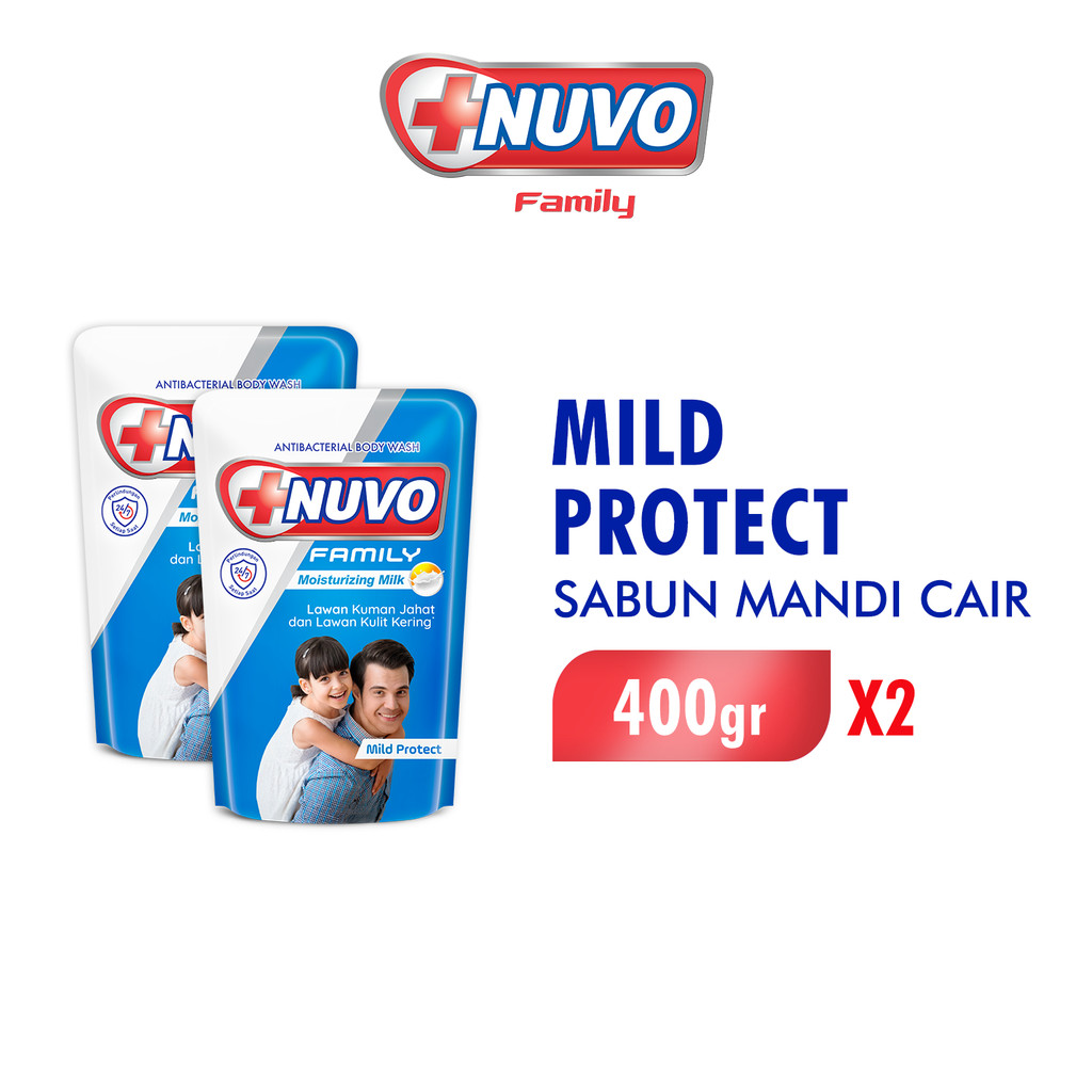 Nuvo Family Sabun Mandi Cair Biru Mild Protect Pouch 400 gr x2