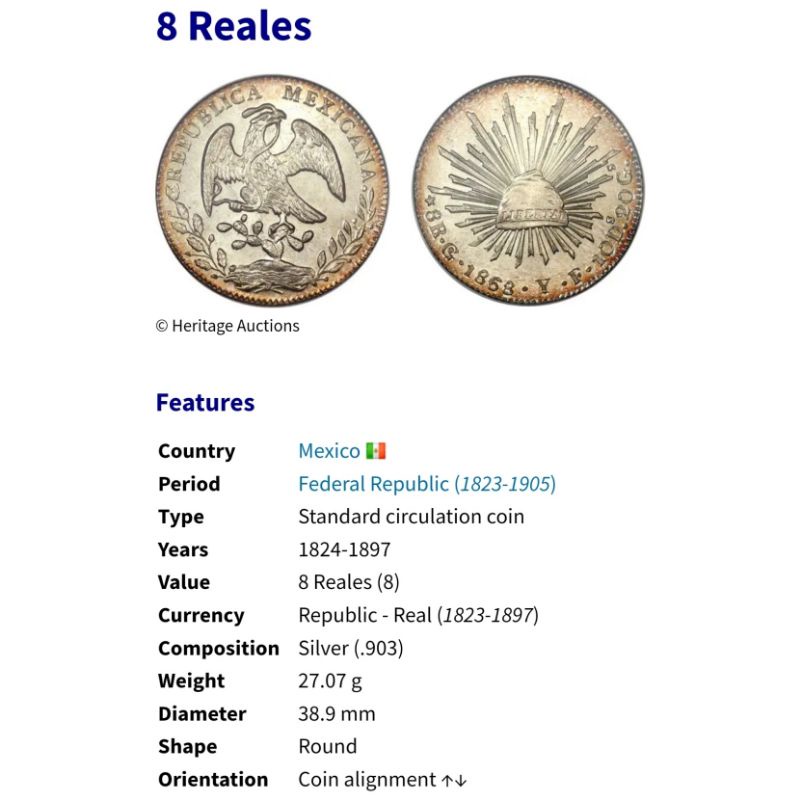 Uang Koin Perak Kuno 8 Reales Mexicana Mexico Tahun 1856 Very Rare Silver Coin