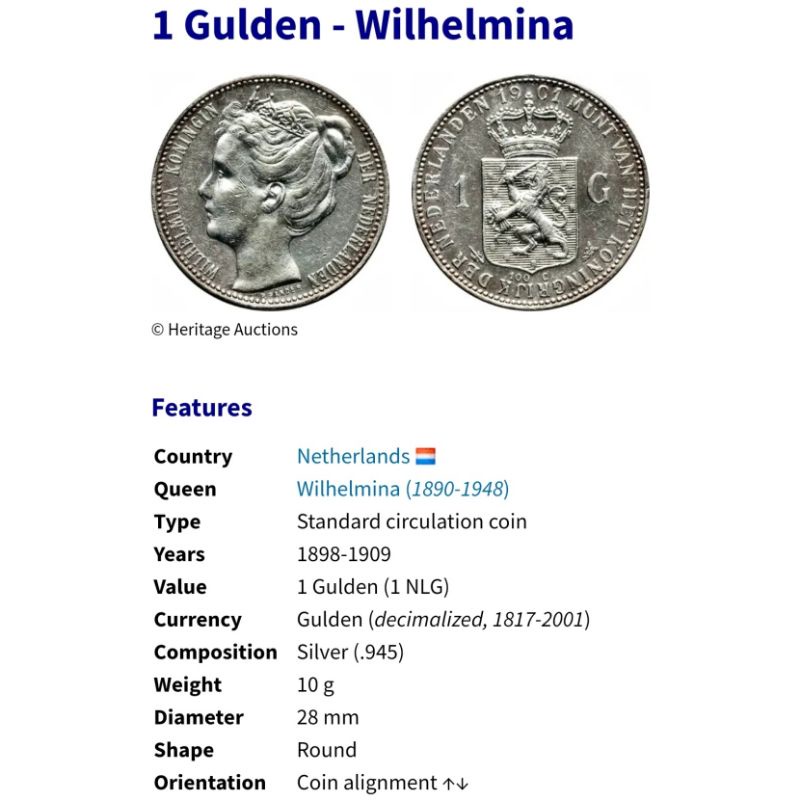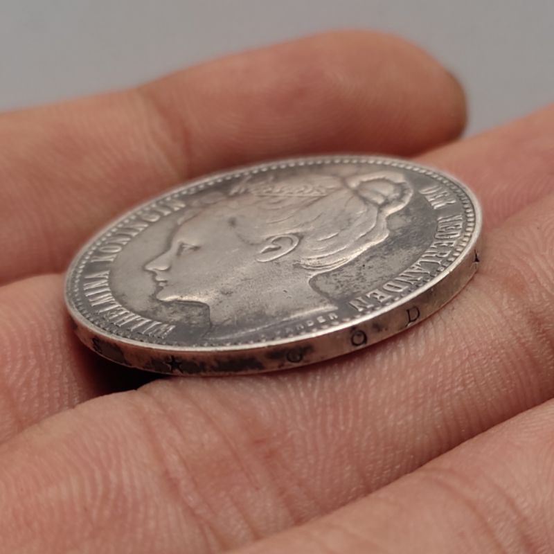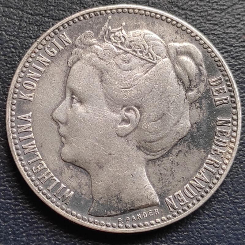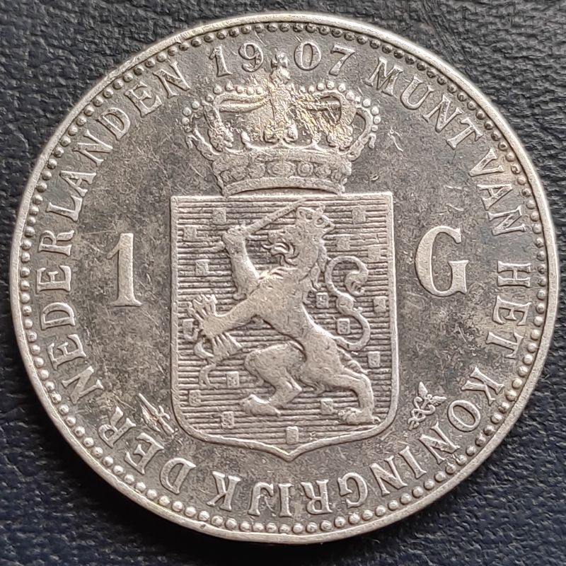 Uang Koin Perak Kuno 1 Gulden Wilhelmina Crown Tahun 1907 Silver Coin