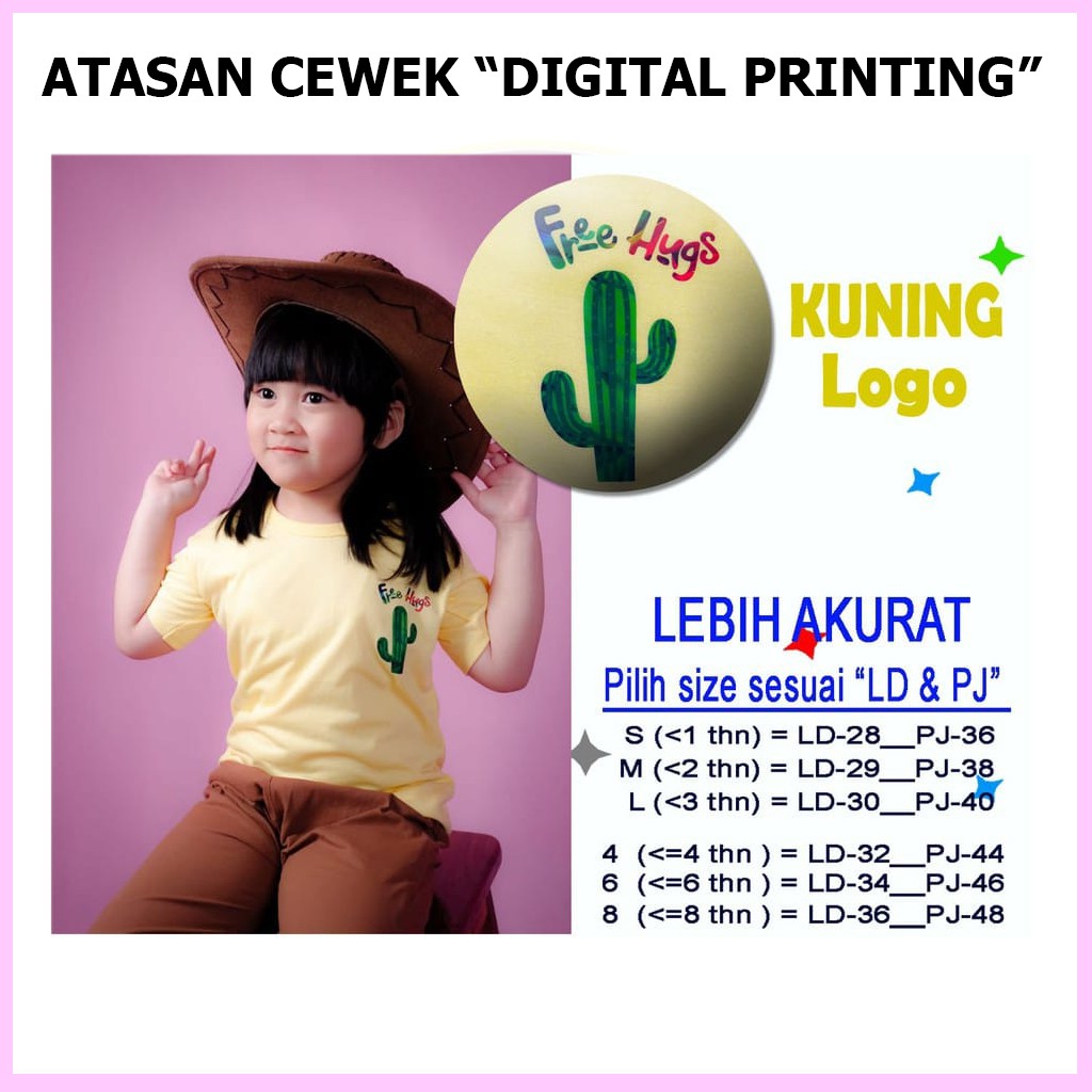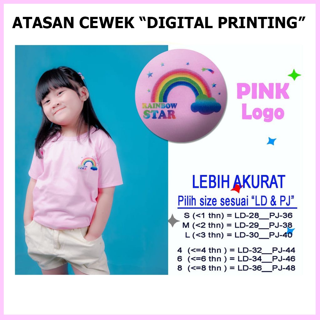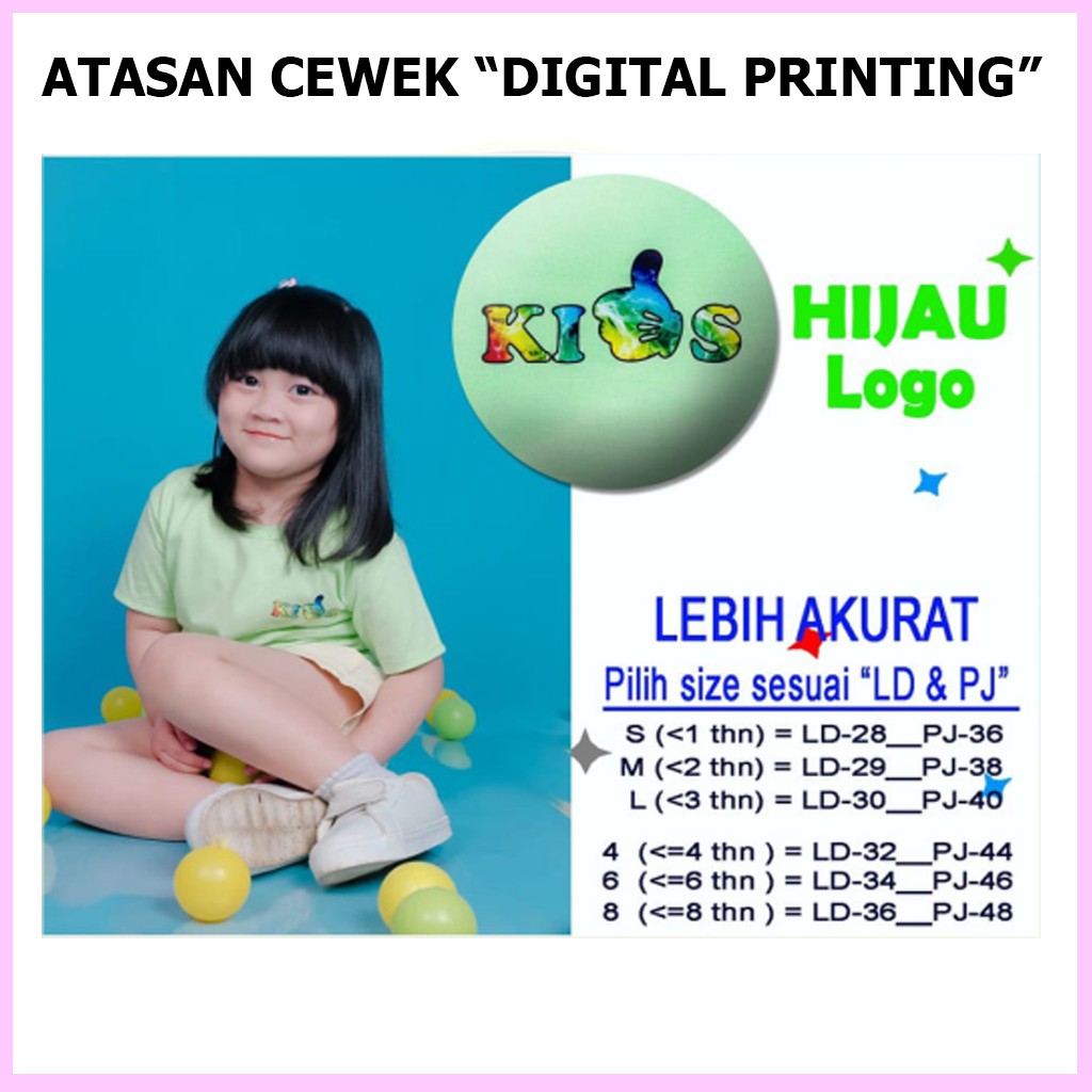 Baju Atasan Anak Perempuan Kelfi Motif Logo Usia 6 Bulan 1 2 3 4 5 6 7 Tahun Kaos Anak Cewek Murah