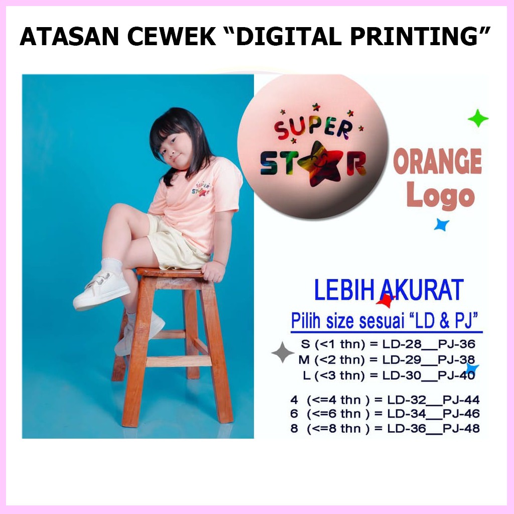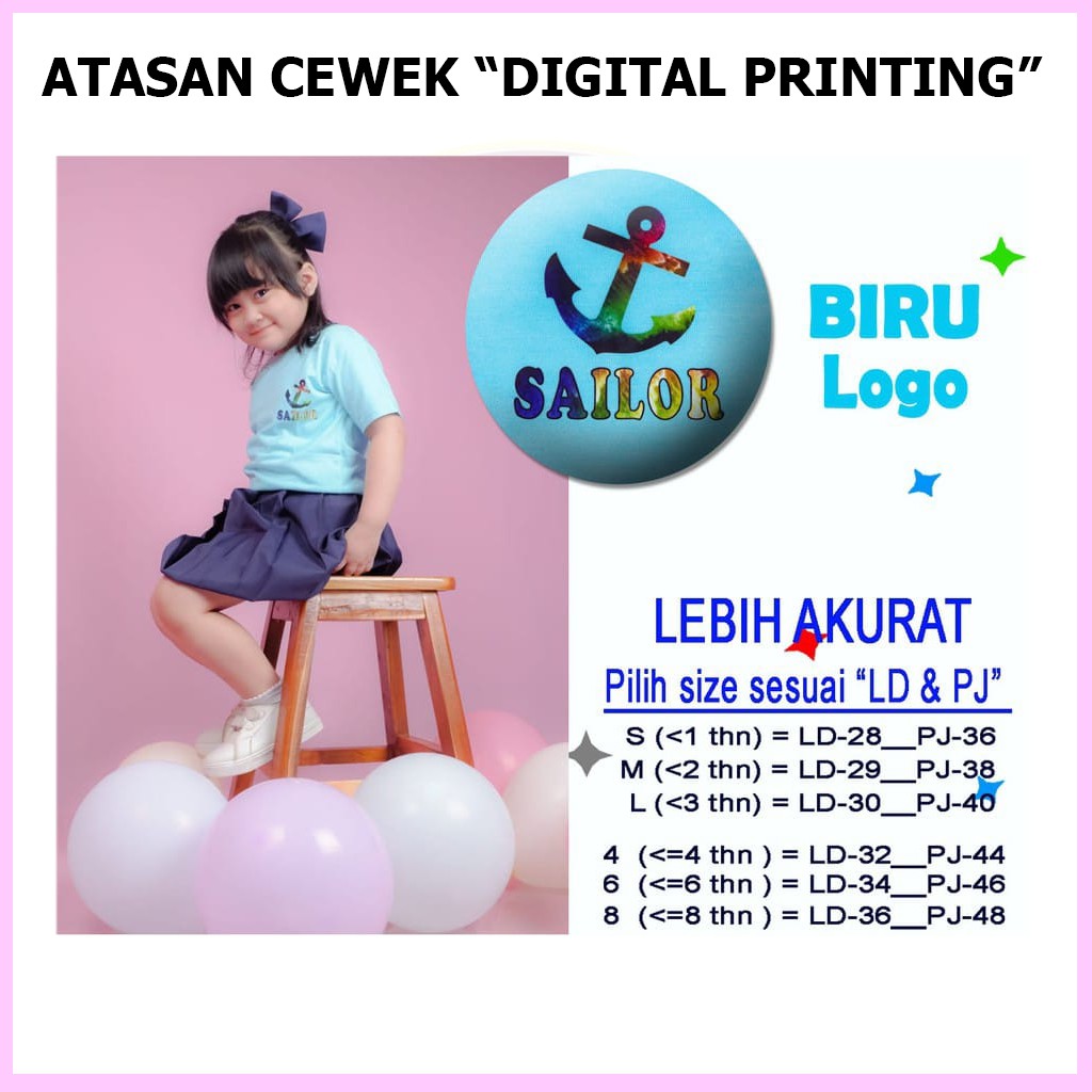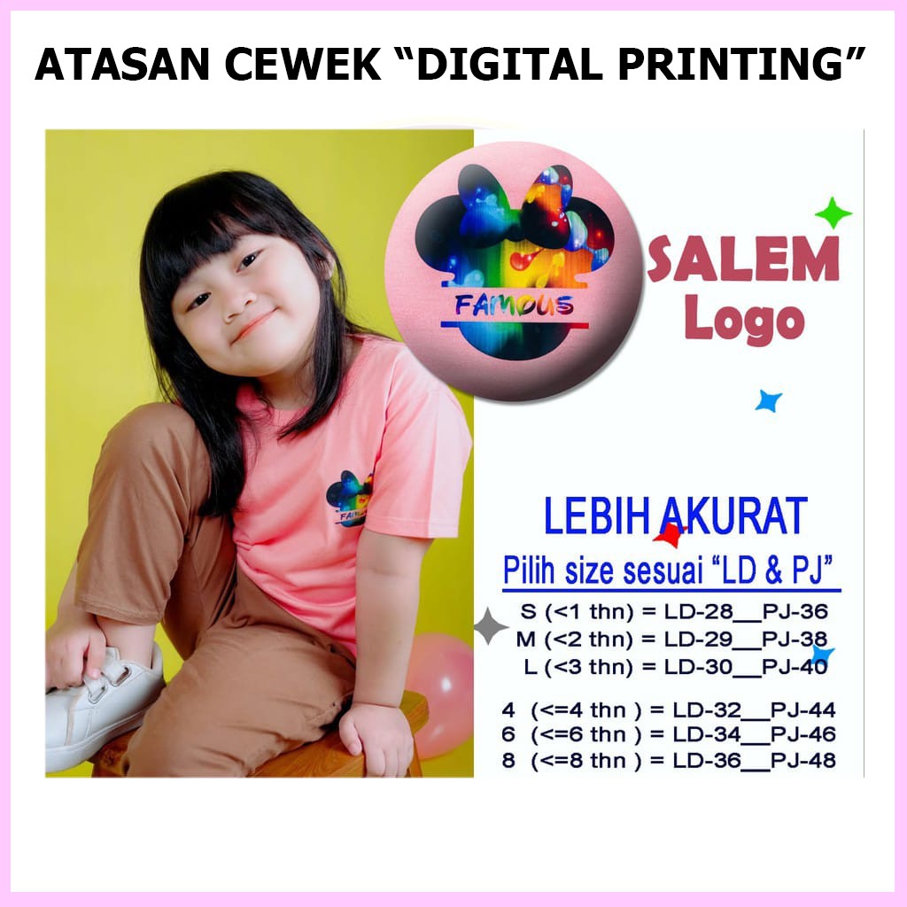 Baju Atasan Anak Perempuan Kelfi Motif Logo Usia 6 Bulan 1 2 3 4 5 6 7 Tahun Kaos Anak Cewek Murah
