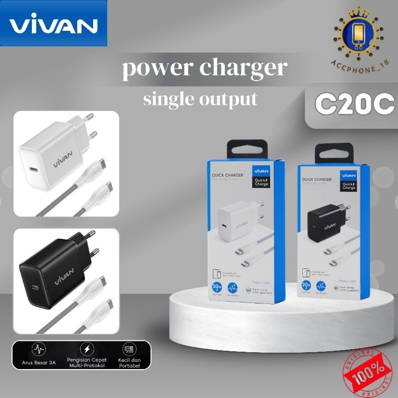 VIVAN POWER C20C/C20S Quick Charger With Data Cable C to C 20W