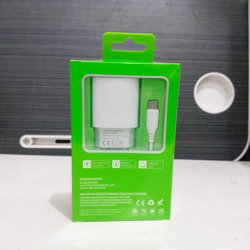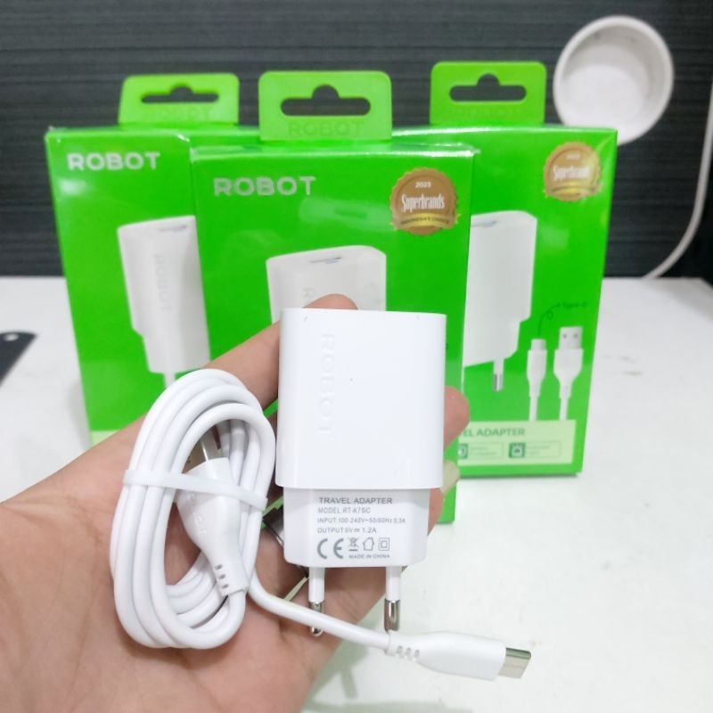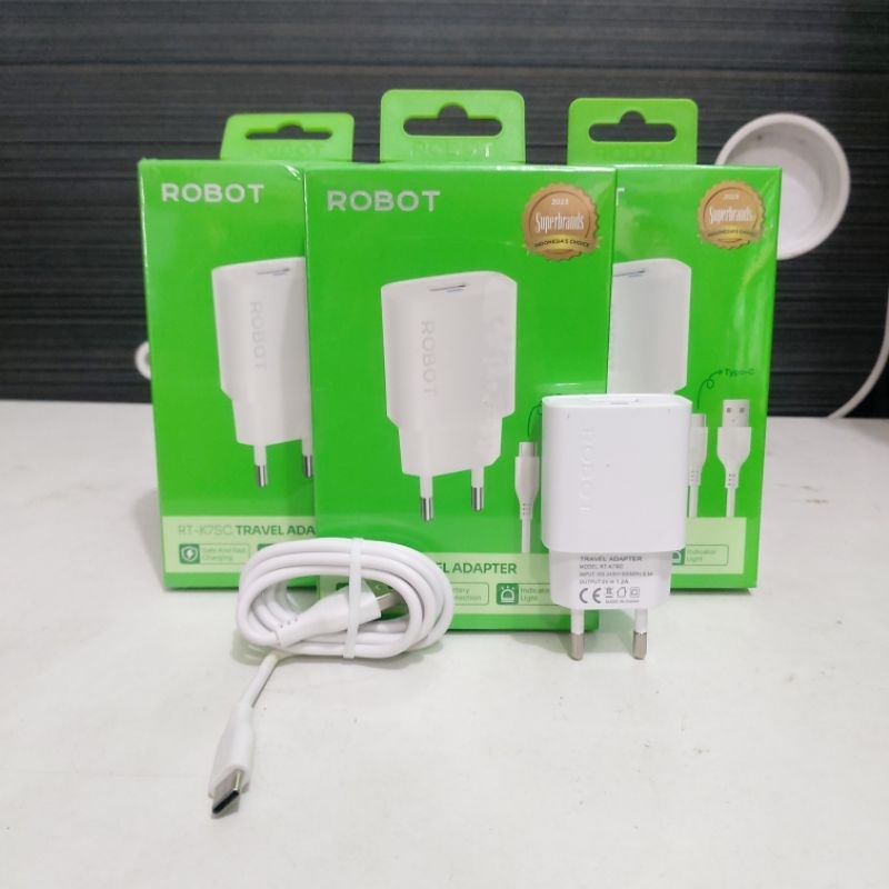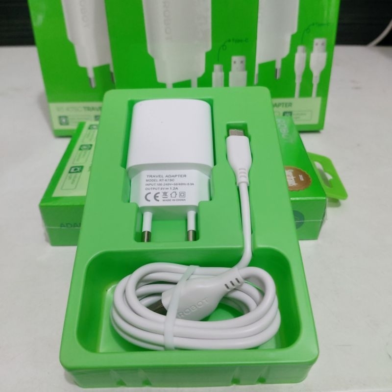 ROBOT RT-K7SC TRAVEL ADAPTER Safe And Fast Charging With Data Cable Type-C 1.2A