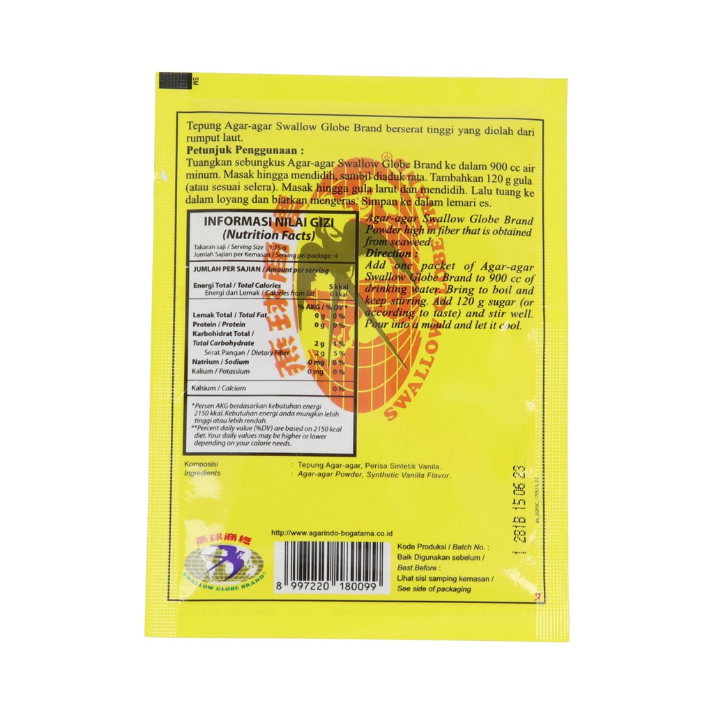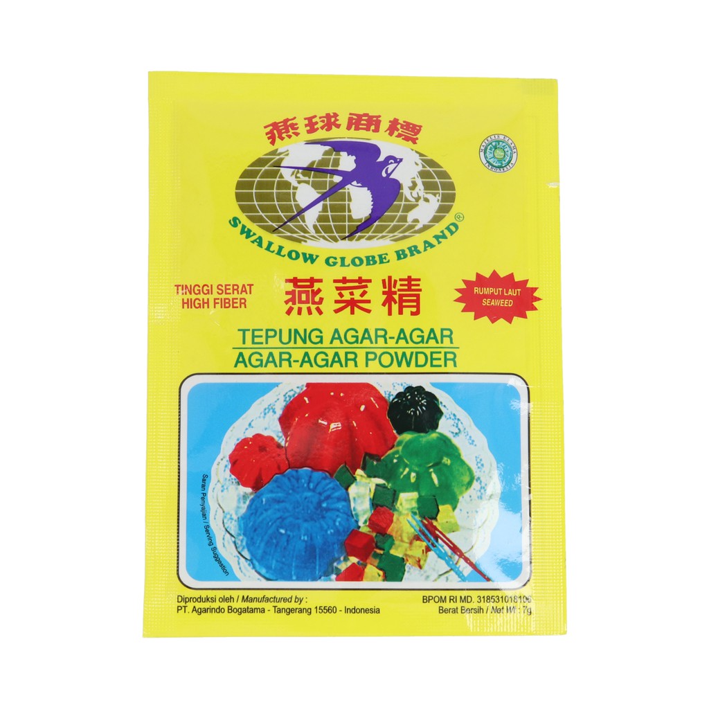 Agar Agar Bubuk Plain Swallow Globe Putih Bening 7 Gram (Isi 6 Pcs)