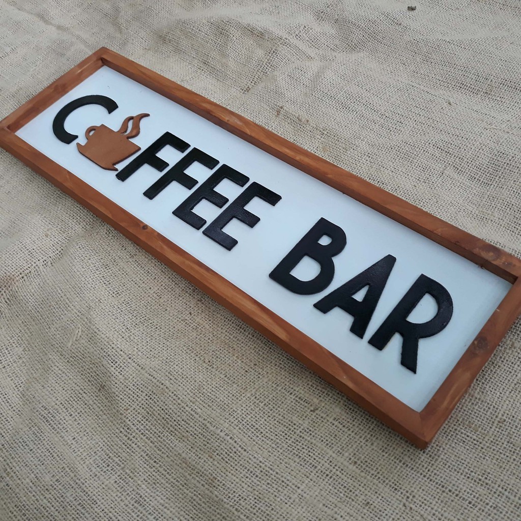Hiasan dinding Coffee Bar - Hiasan dinding frame tulisan timbul
