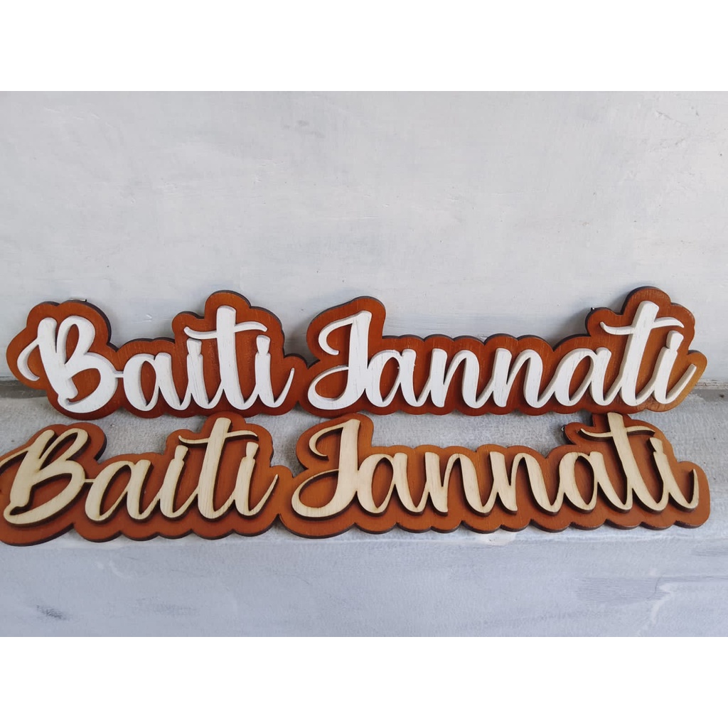 Hiasan dinding baiti jannati Sign kayu - Pajangan walldecor tulisan timbul