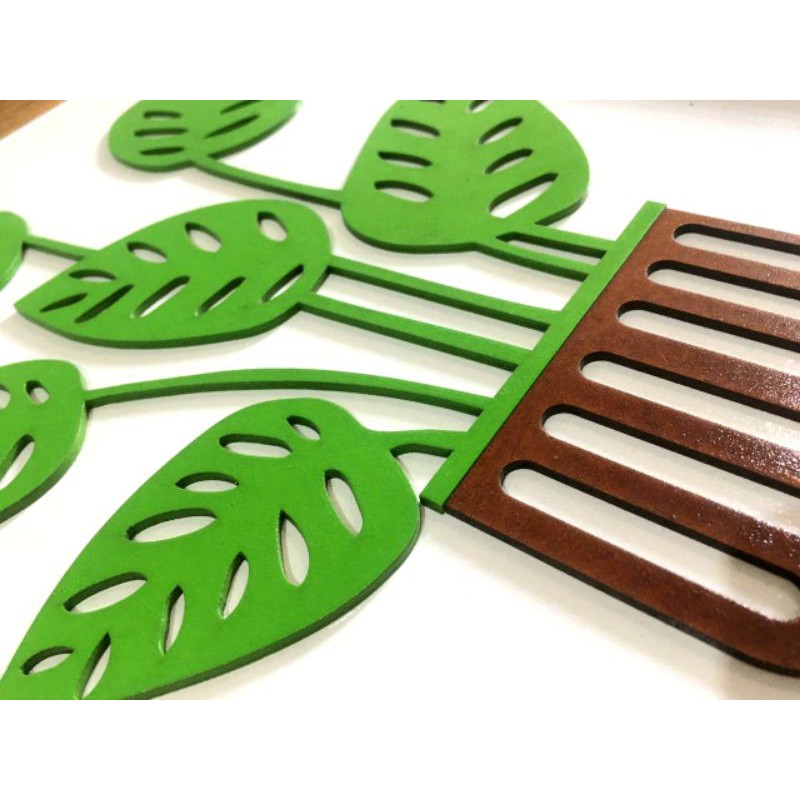 Hiasan Dinding Pot daun A - Hiasan dinding frame tulisan timbul