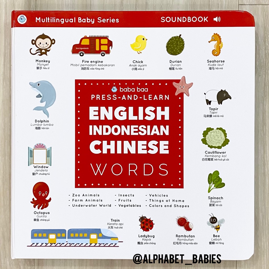 BabaBaa Press and Learn English Indonesian Chinese Words Sound Book
