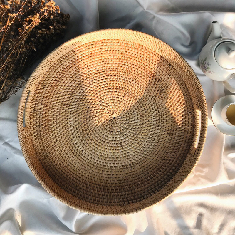 Lombok Authentic | Kalo Nampan Saji Rotan Bulat | Handmade Rattan Tray | Baki Anyaman Serving Tray | Tempat Buah Aesthetic | Properti Foto Lucu