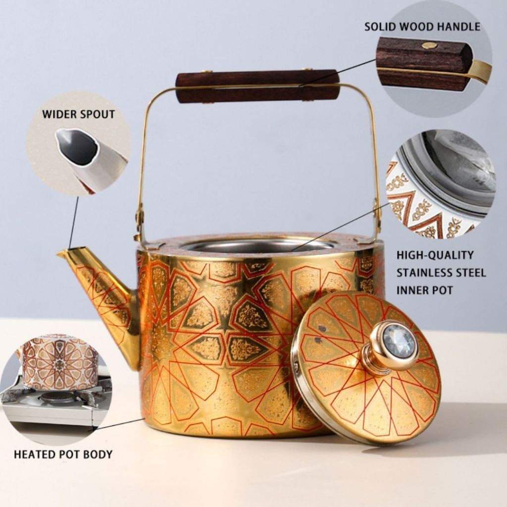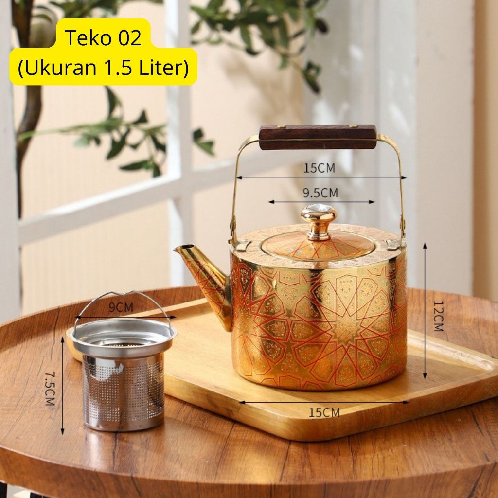 Teko Stainless Steel Motif Arab Maroko Teko Teh Corak Timur Tengah 1.5L - 2.5L – Desain Mewah & Elegan