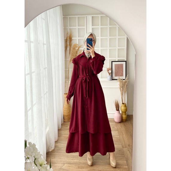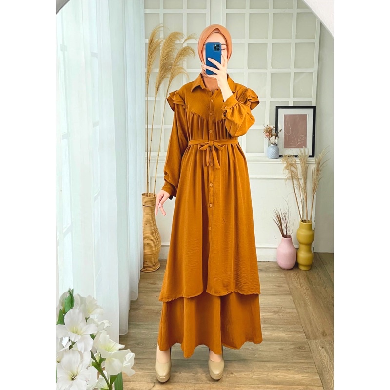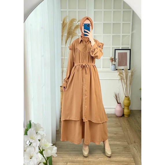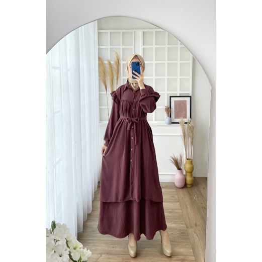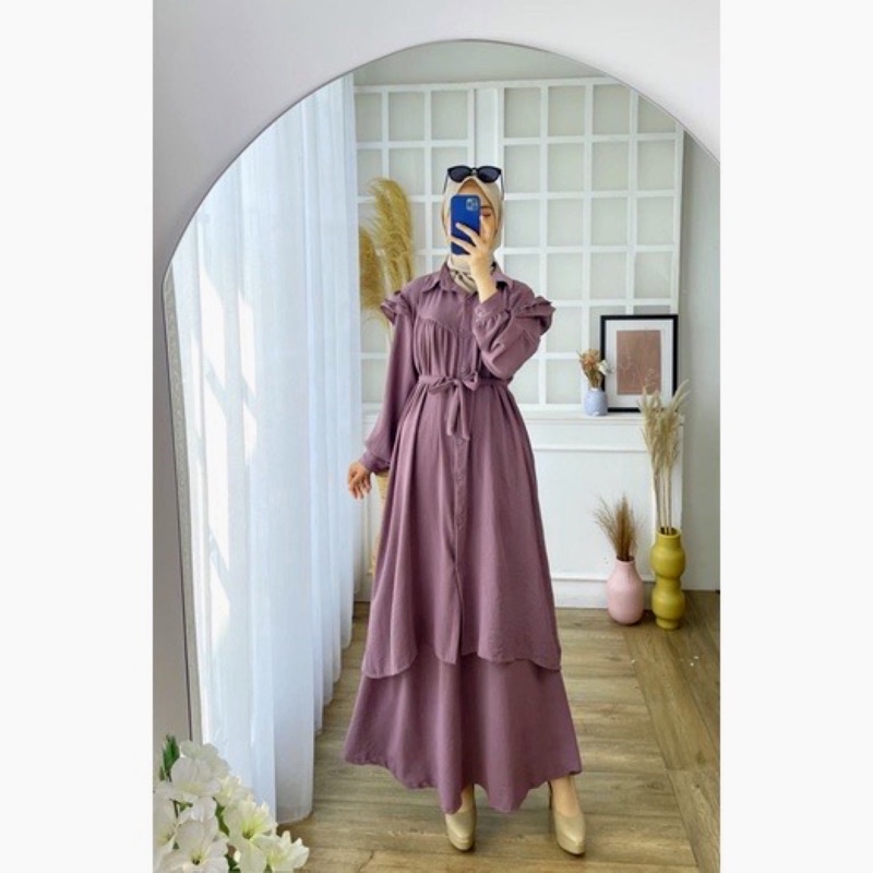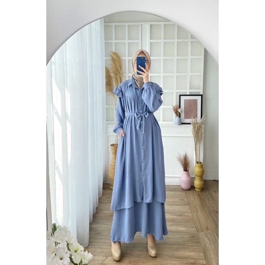 SETROK CRINKLE ADIBA JUMBO XXL STELAN MUSLIMAH POLOS BUSUI IKAT TALI KANCING LEBARAN ONESET MURAH