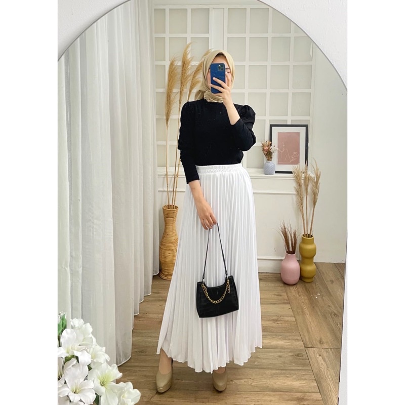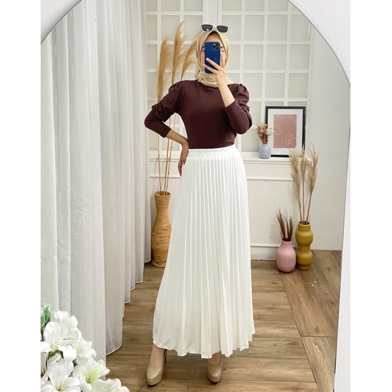 ROK PLISKET PUTIH FURING 256 PREMIUM HYGET WHITE PINGGANG KARET SKIRT PANJANG MAXI FLARE MAYUNG AGUSTUSAN