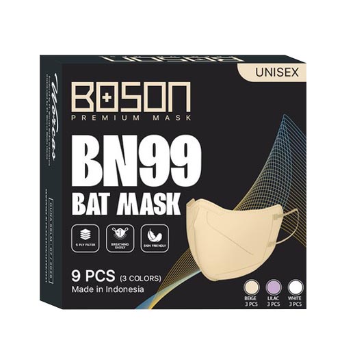BOSON BN99 Premium Bat Mask 5 Ply Isi 9 Pcs - Warna Kombinasi