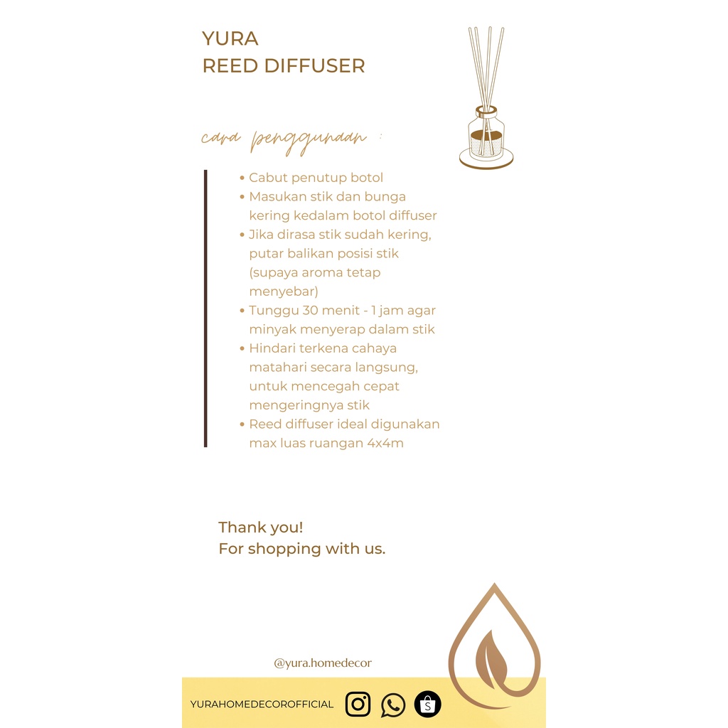 Y U R A Reed Diffuser 50ml | Pengharum Ruangan