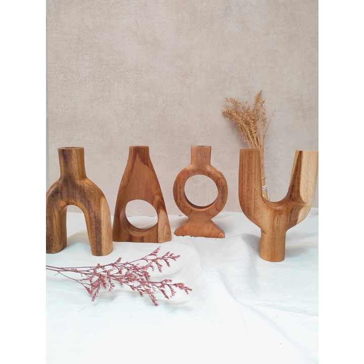 VAS KAYU AESTHETIC / VAS BUNGA AESTHETIC KAYU JATI SOLID / HIASAN KAMAR