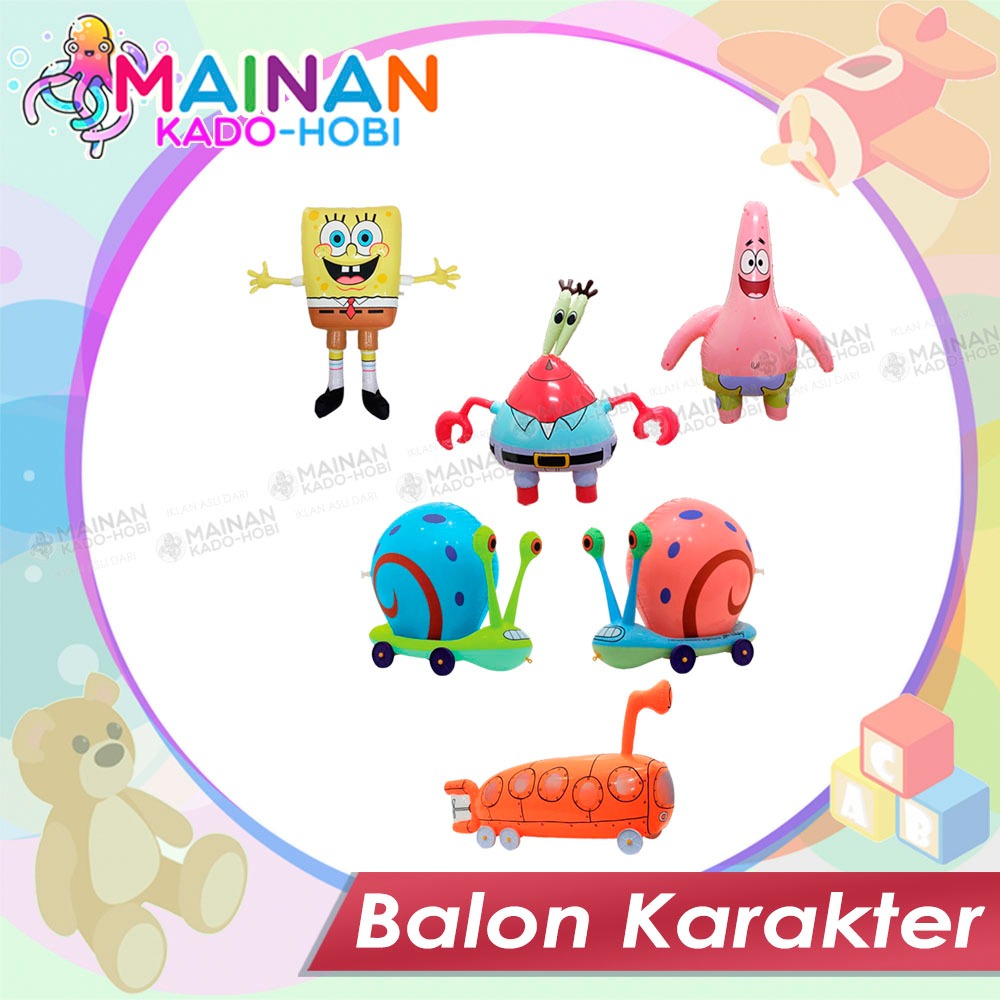 KADO ULANG TAHUN MAINAN ANAK BALON VINYL TEBAL KARAKTER SPONGEBOB MR CRAB PATRICK GERY SIPUT KAPAL SELAM