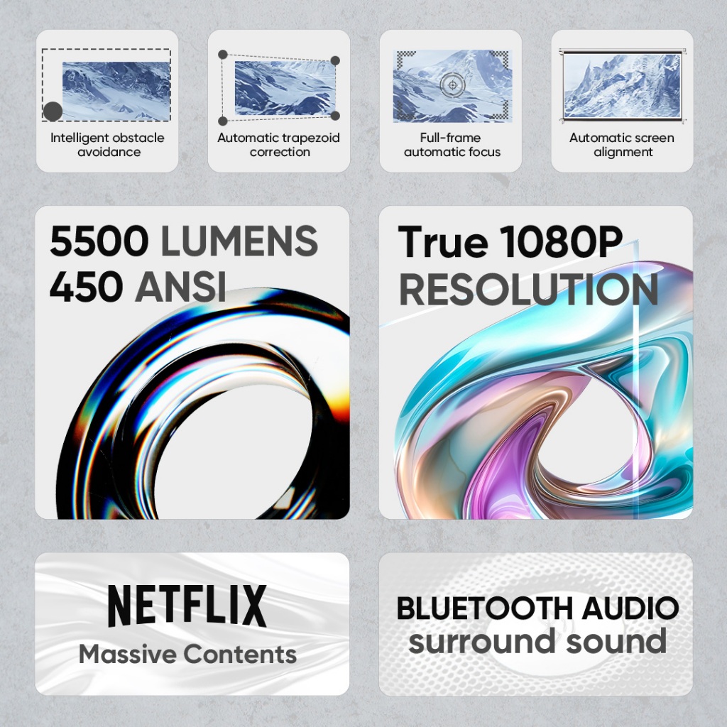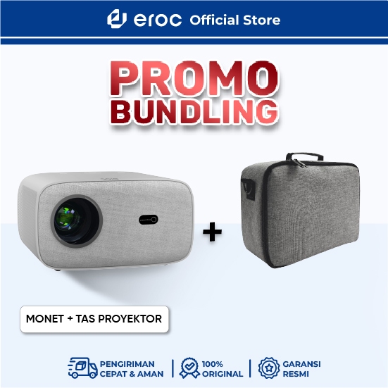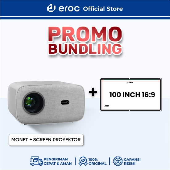 EROC Smart Proyektor LCD 450 ANSI Full HD Android 12 - Netflix - Display 200 Inch - Auto Focus-MONET