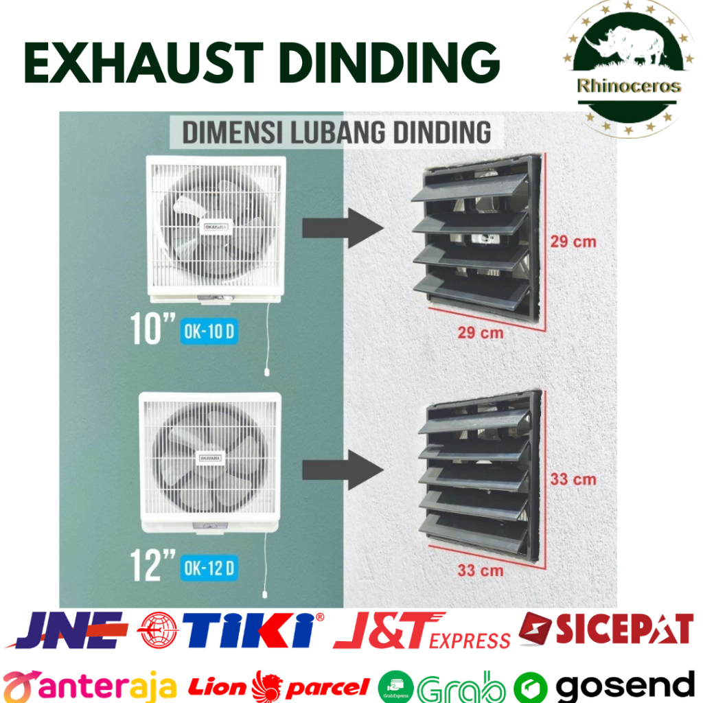 Exhaust Fan Dinding Blower Angin 10 Inch dan 12 Inch Hexos Penyedot Udara Hexos Dinding Kipas Angin Hisap Sedot Udara Asap