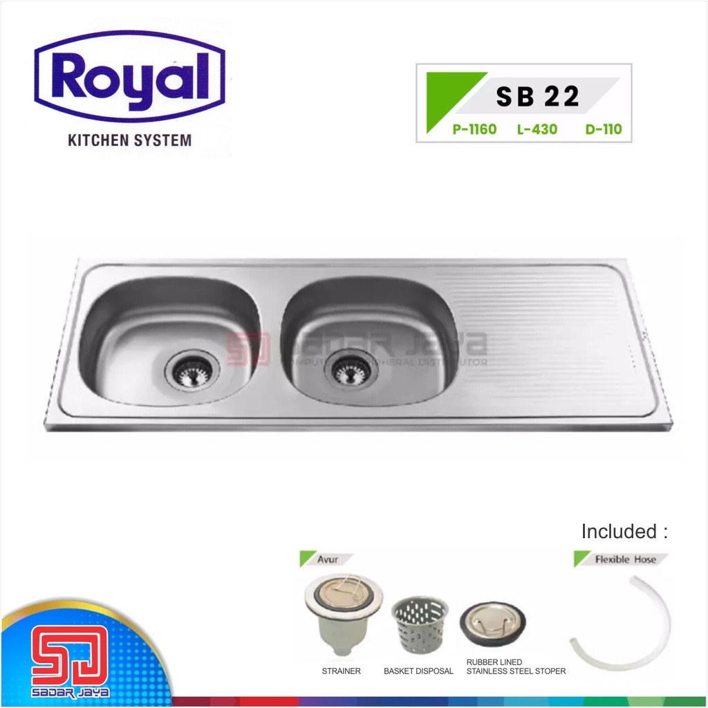 Royal Kitchen Sink SB 22 Wastafel Dapur Bak Cuci Piring 2 Bowl Sayap SB22 Work Top