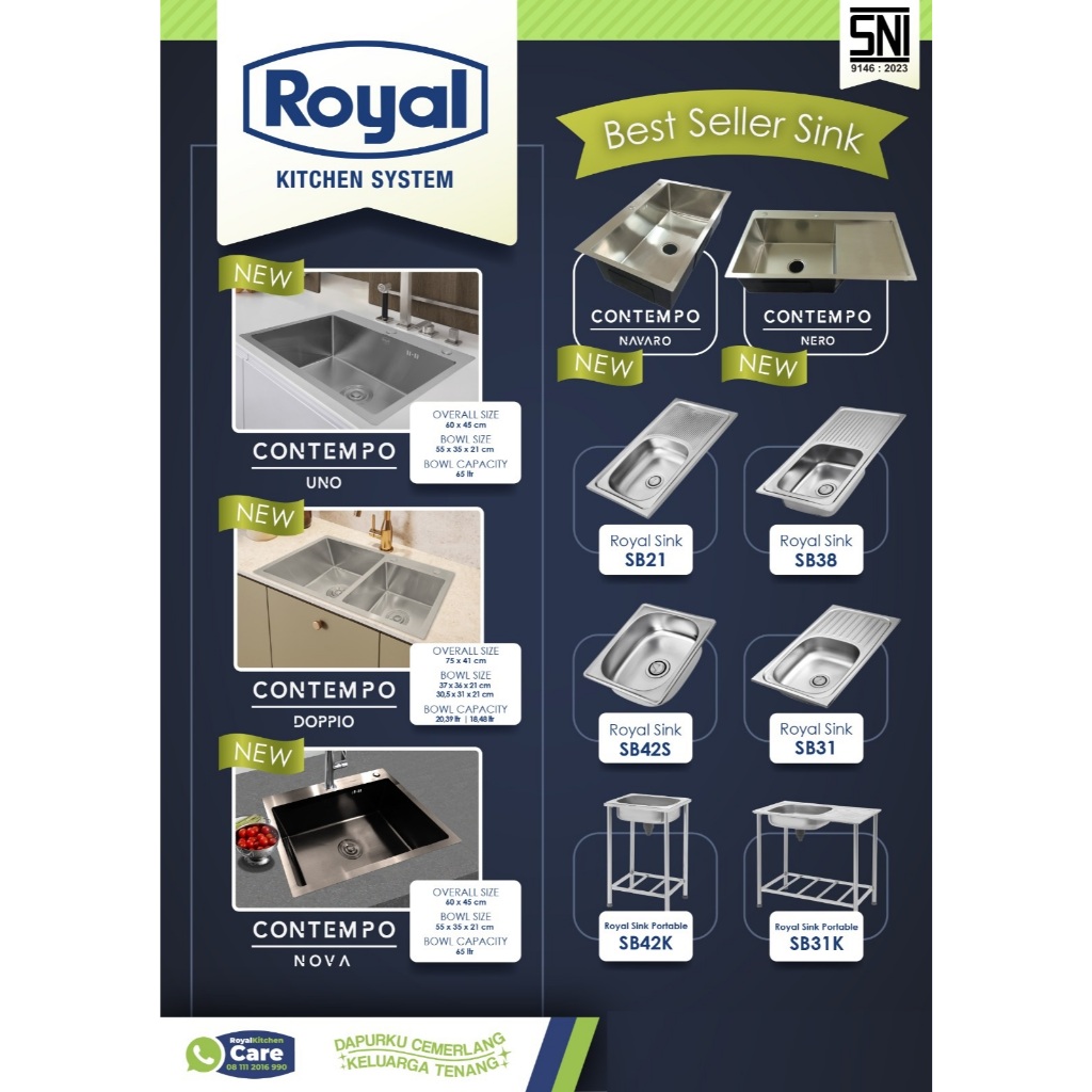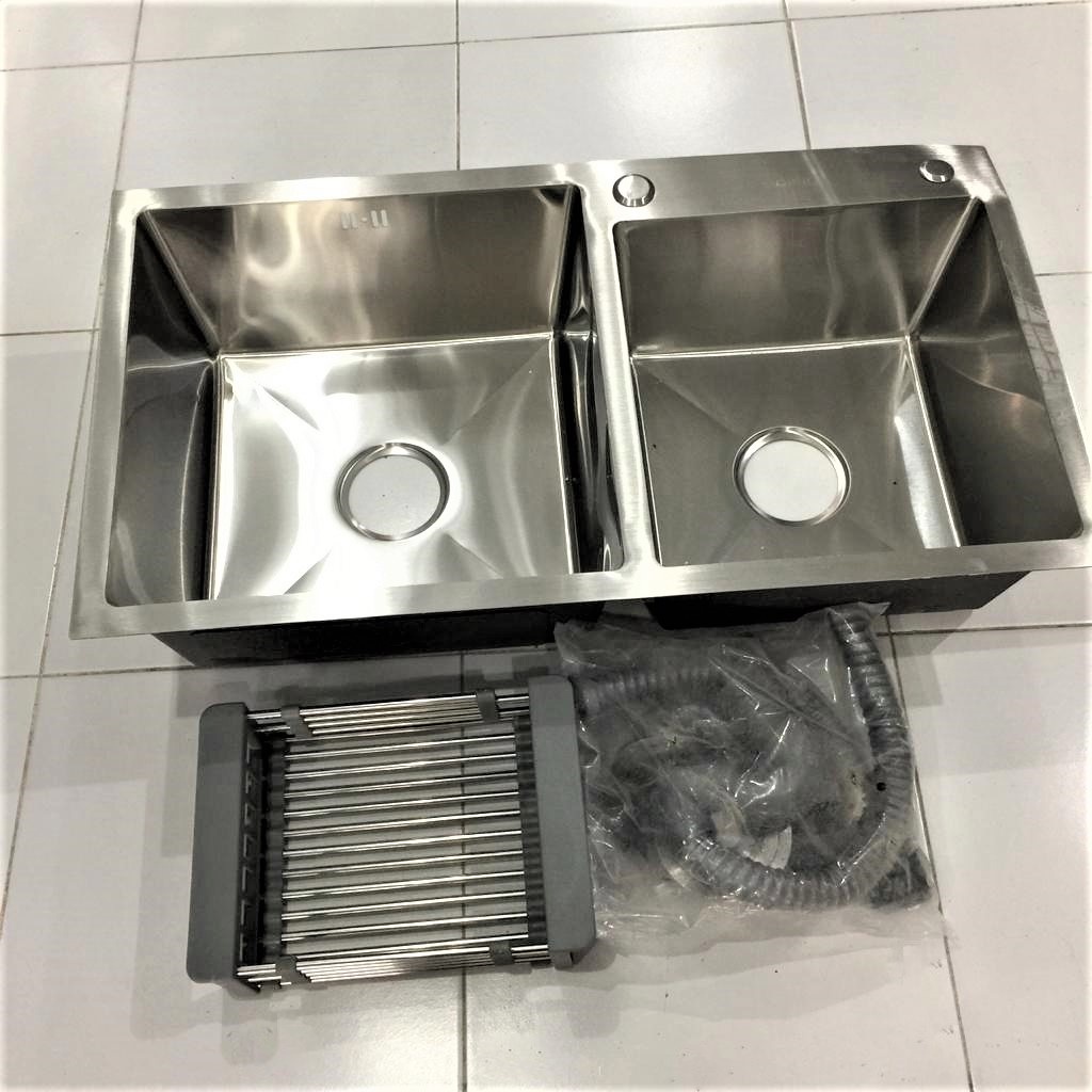 Royal Kitchen Sink Contempo Doppio Wastafel 2 Bowl Bak Cucian Piring Tebal 2mm Lubang Double