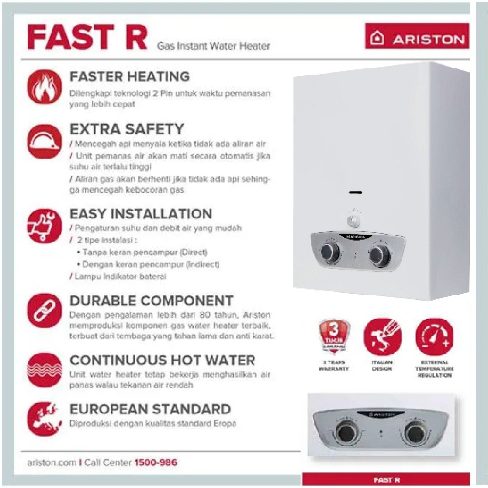 Ariston Fast R 10 liter /menit Instan Water Heater Gas LPG Pemanas Air Mandi