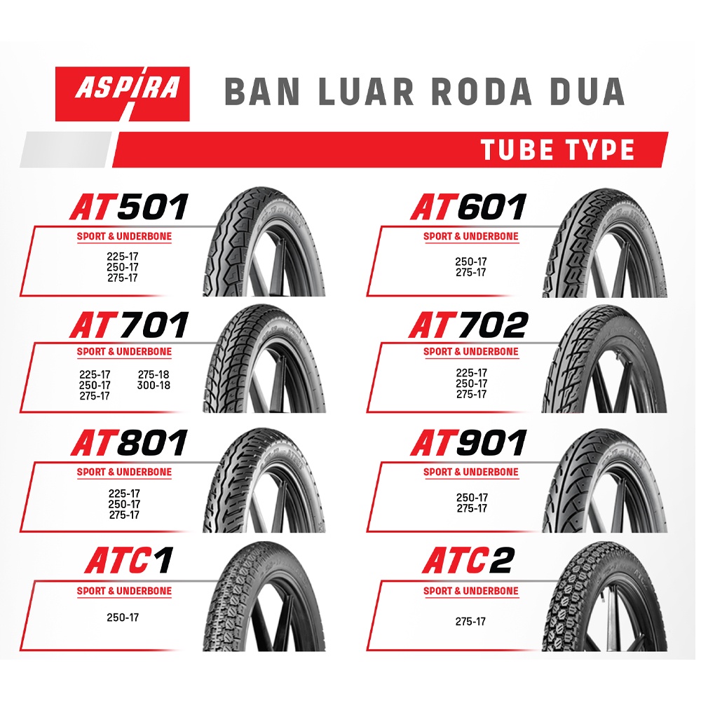Ban Aspira ATC 1 Tube Type 250-17 Untuk Ban Depan Standard Honda Supra, Supra Fit, Legenda & Ban Belakang Standard Motor Honda Grand, Suzuki Smash Lama, Yamaha Vega (12-25017-ATC1)